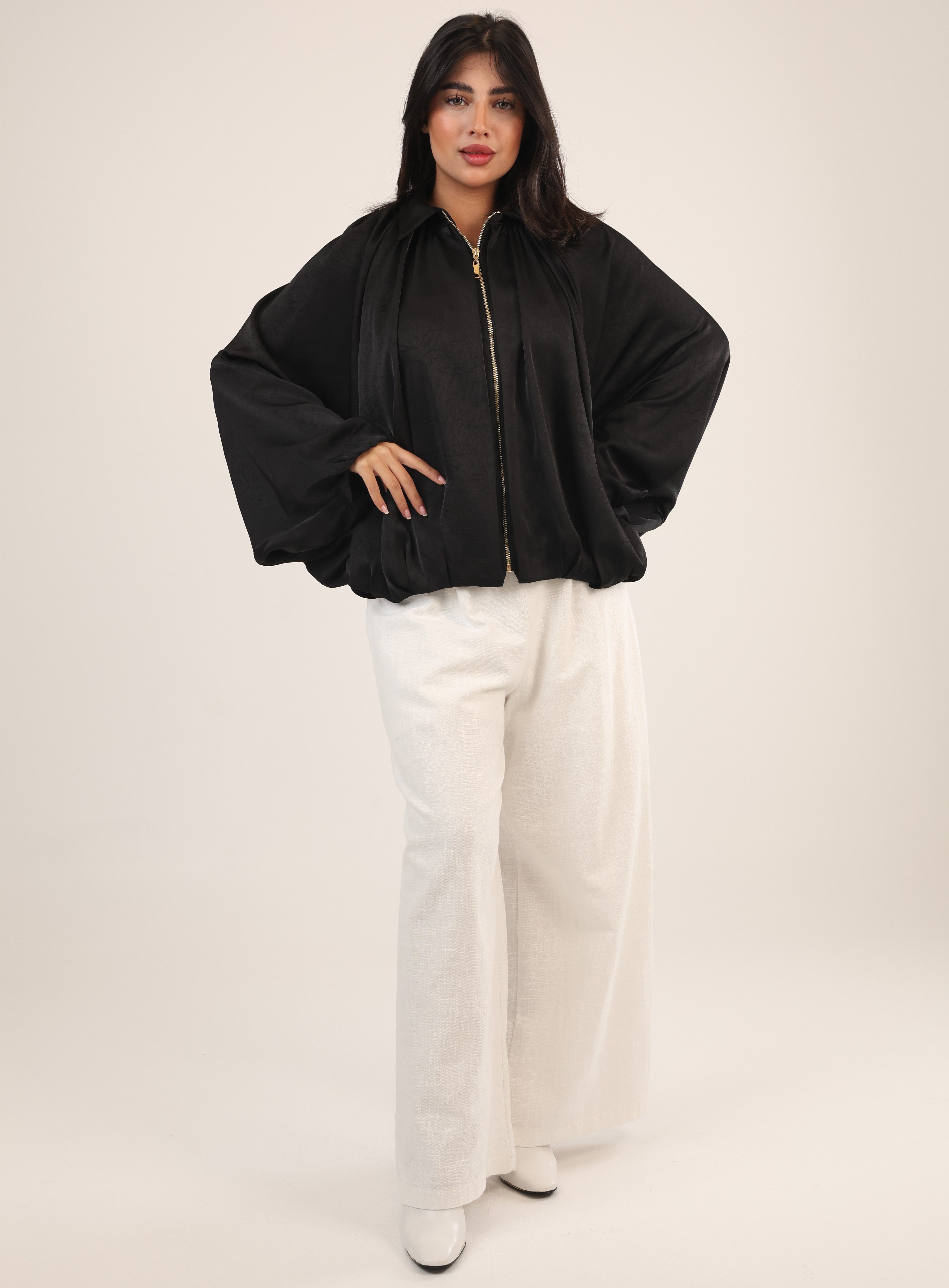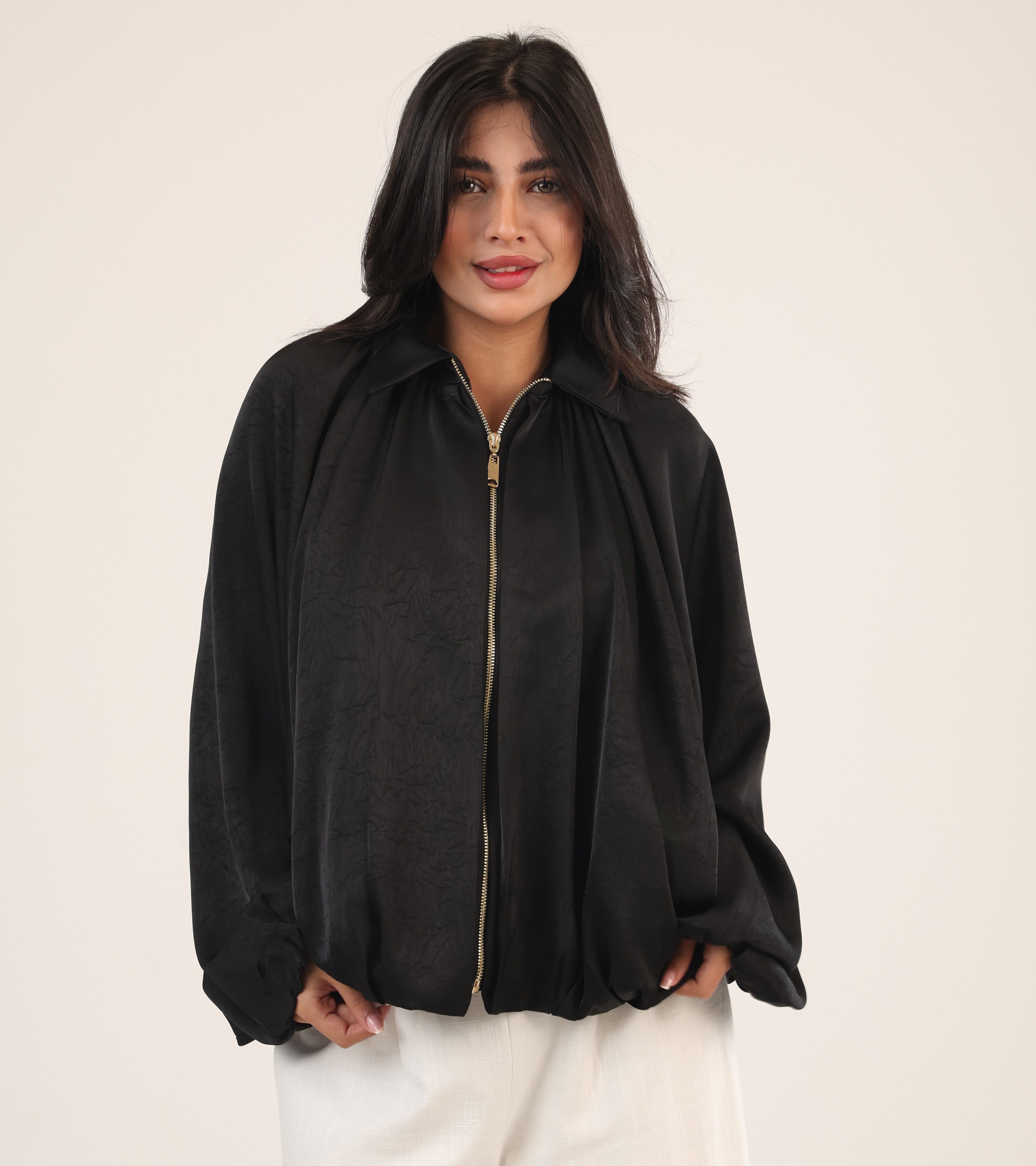 082583 - Black zipper oversized Jacket