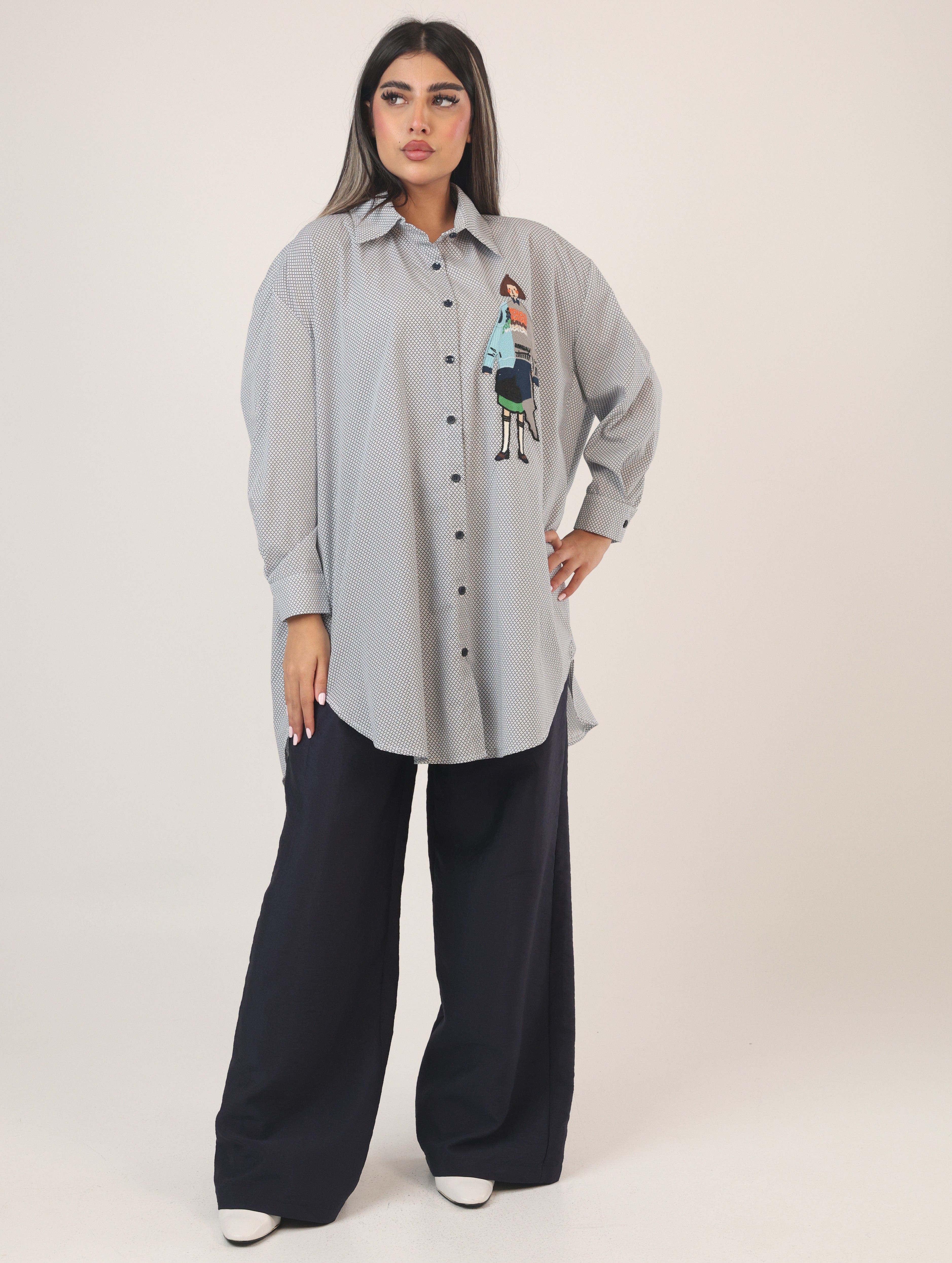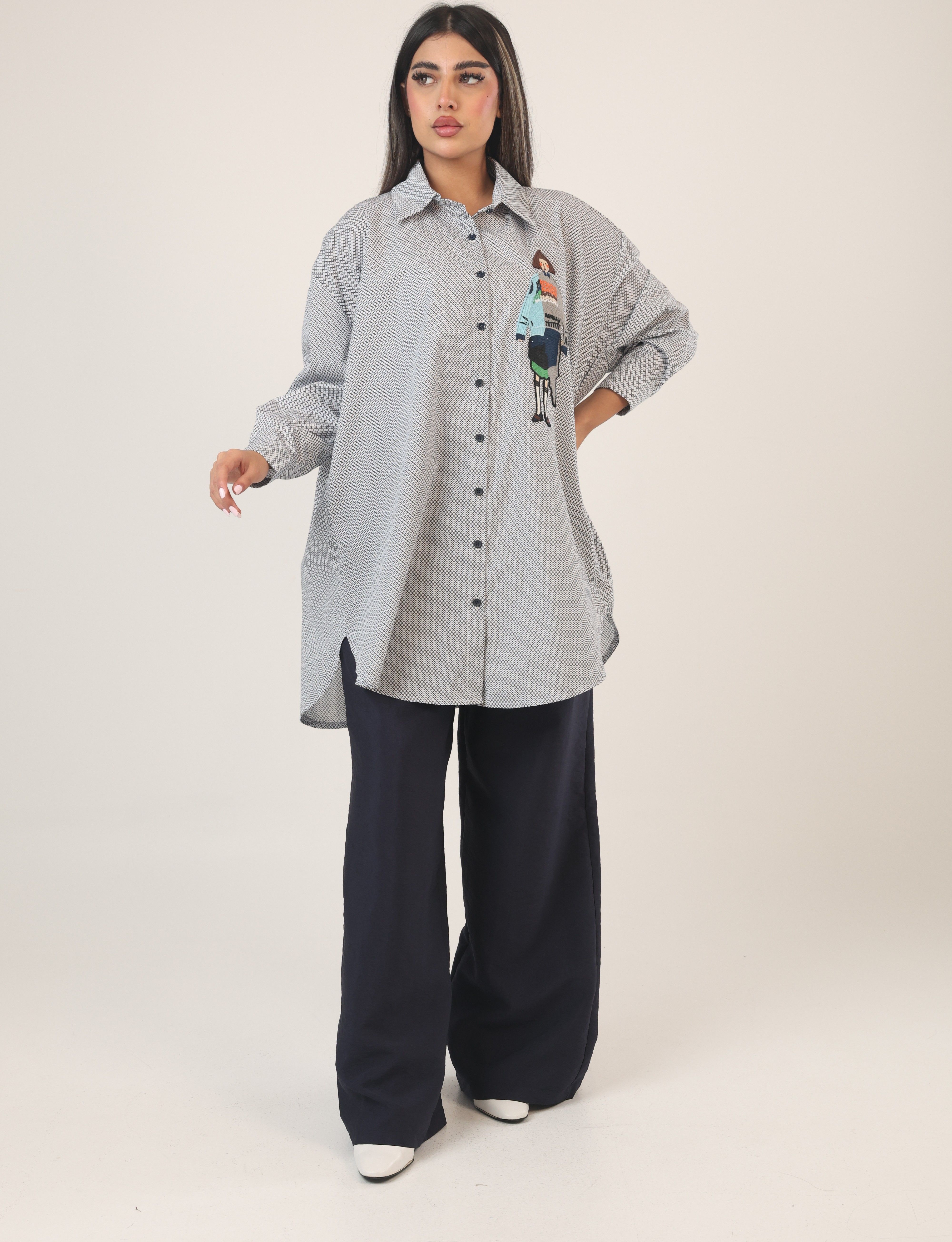 092534 - Dark blue & white oversize shirt