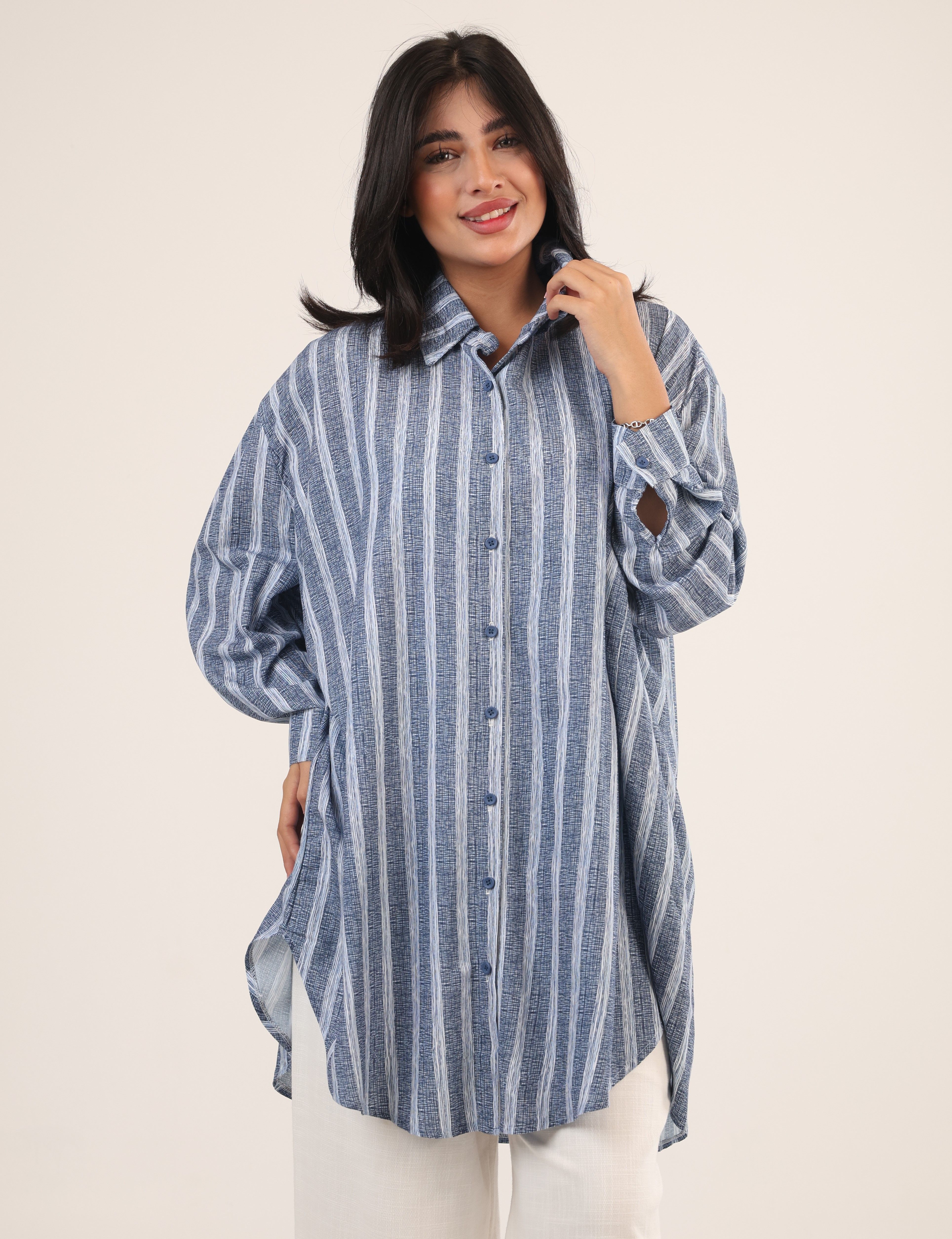 092537 - blue striped oversize shirt