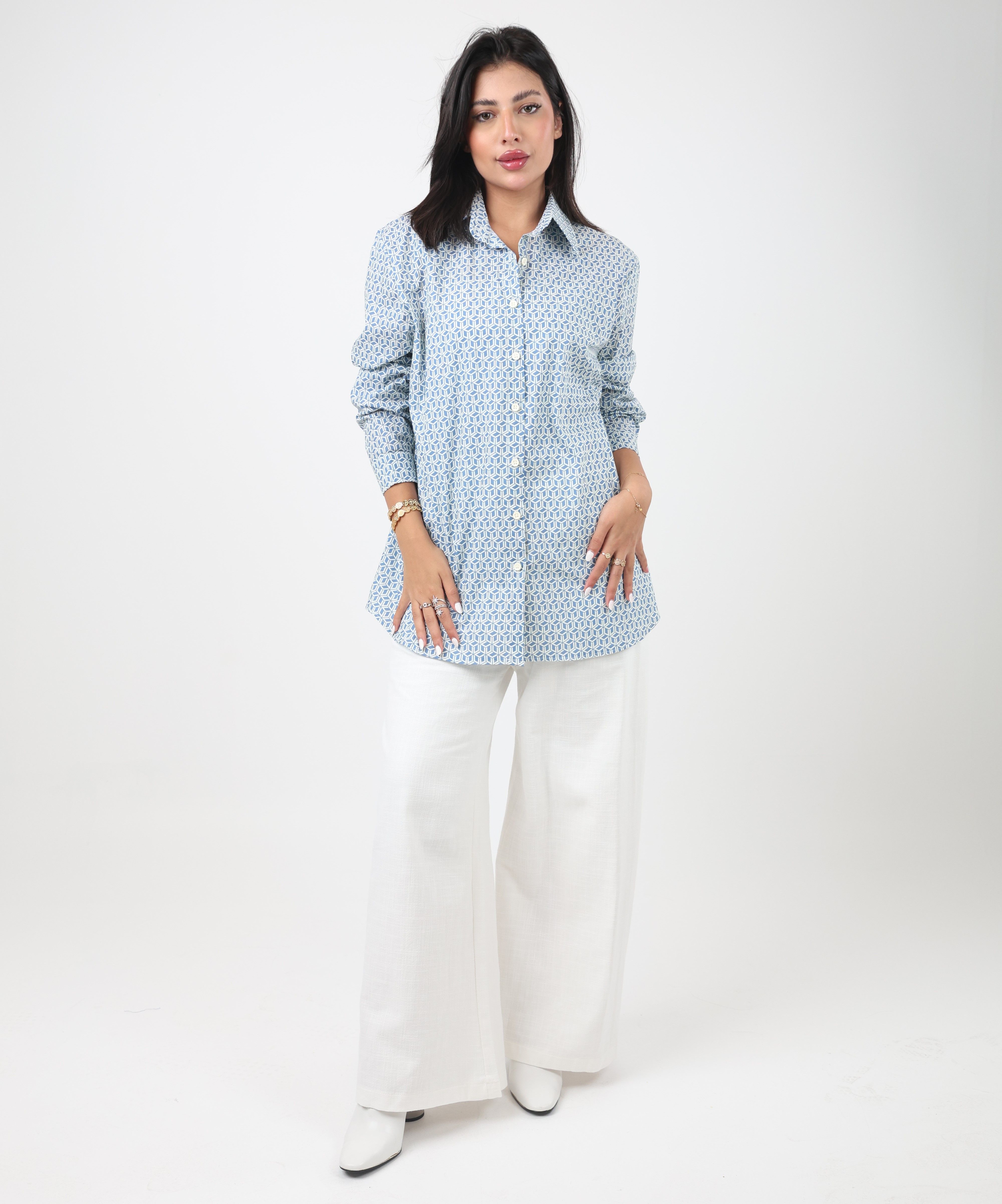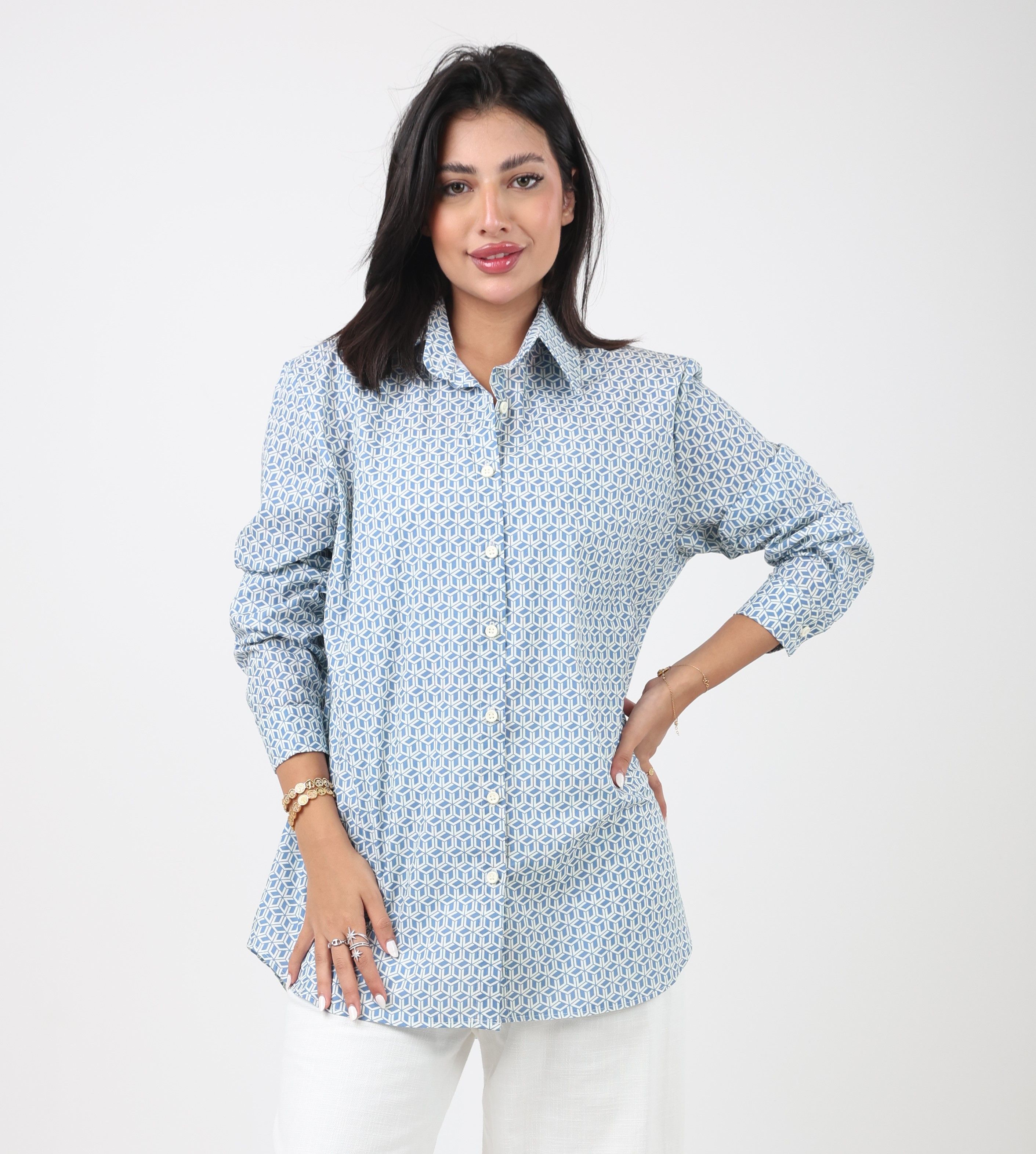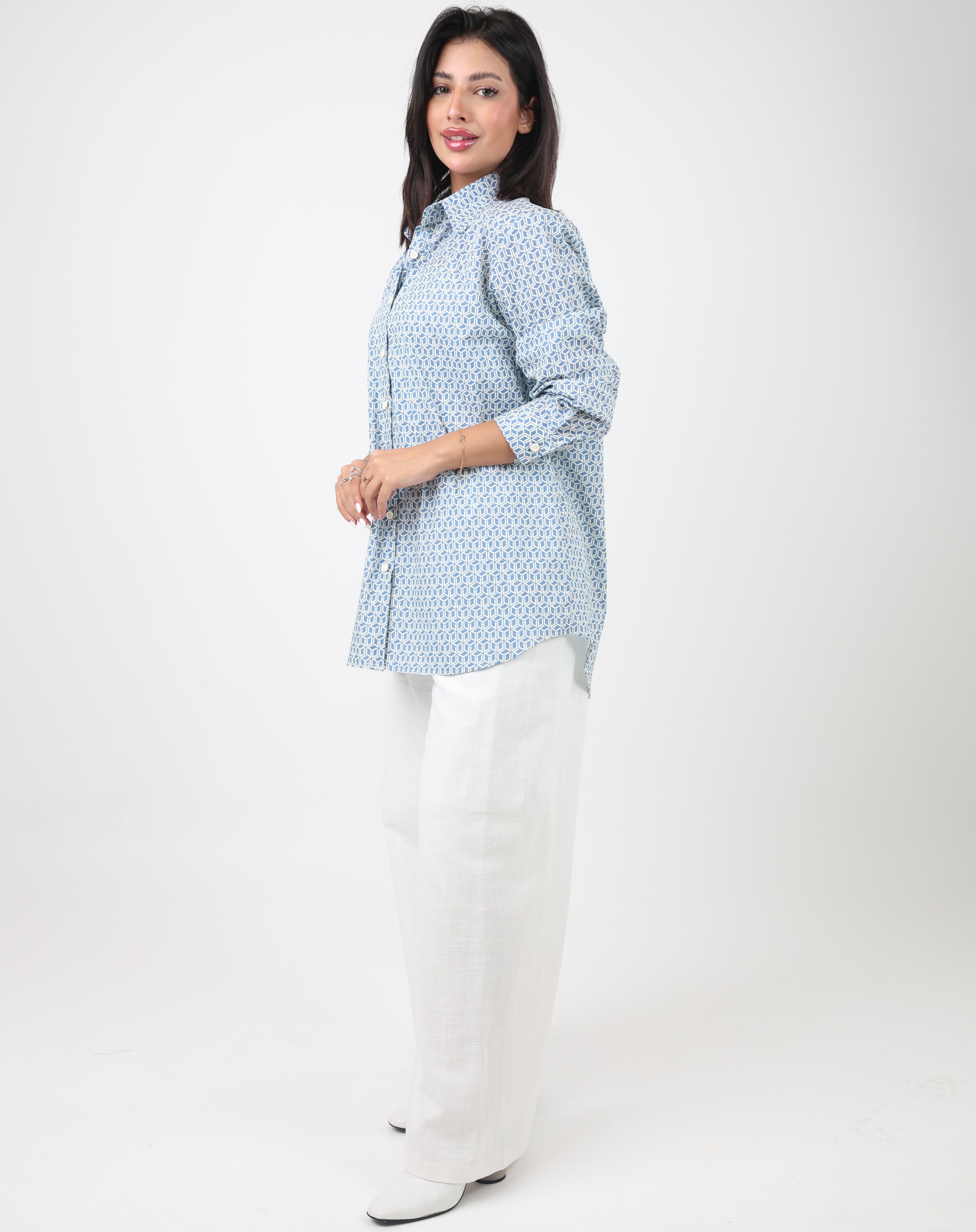 092541 - blue & white regular cut shirt