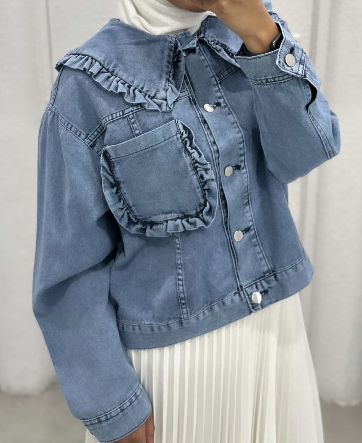 102527 - Ruffle Denim Blouse Jacket