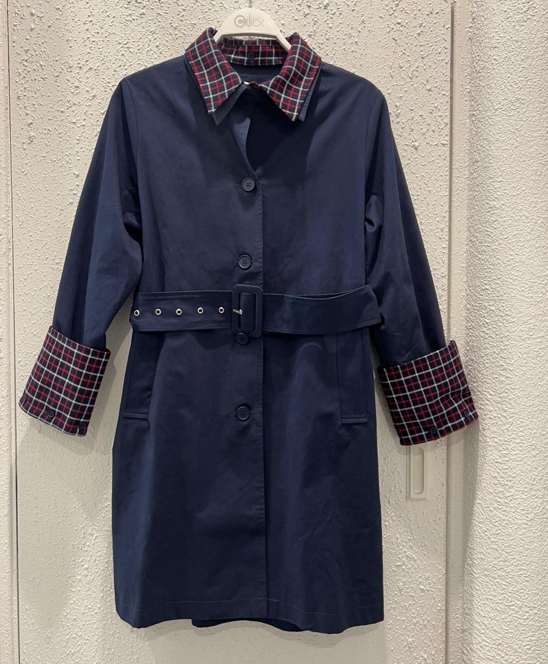 112516 - Plaid collar Trench coat - Navy Blue
