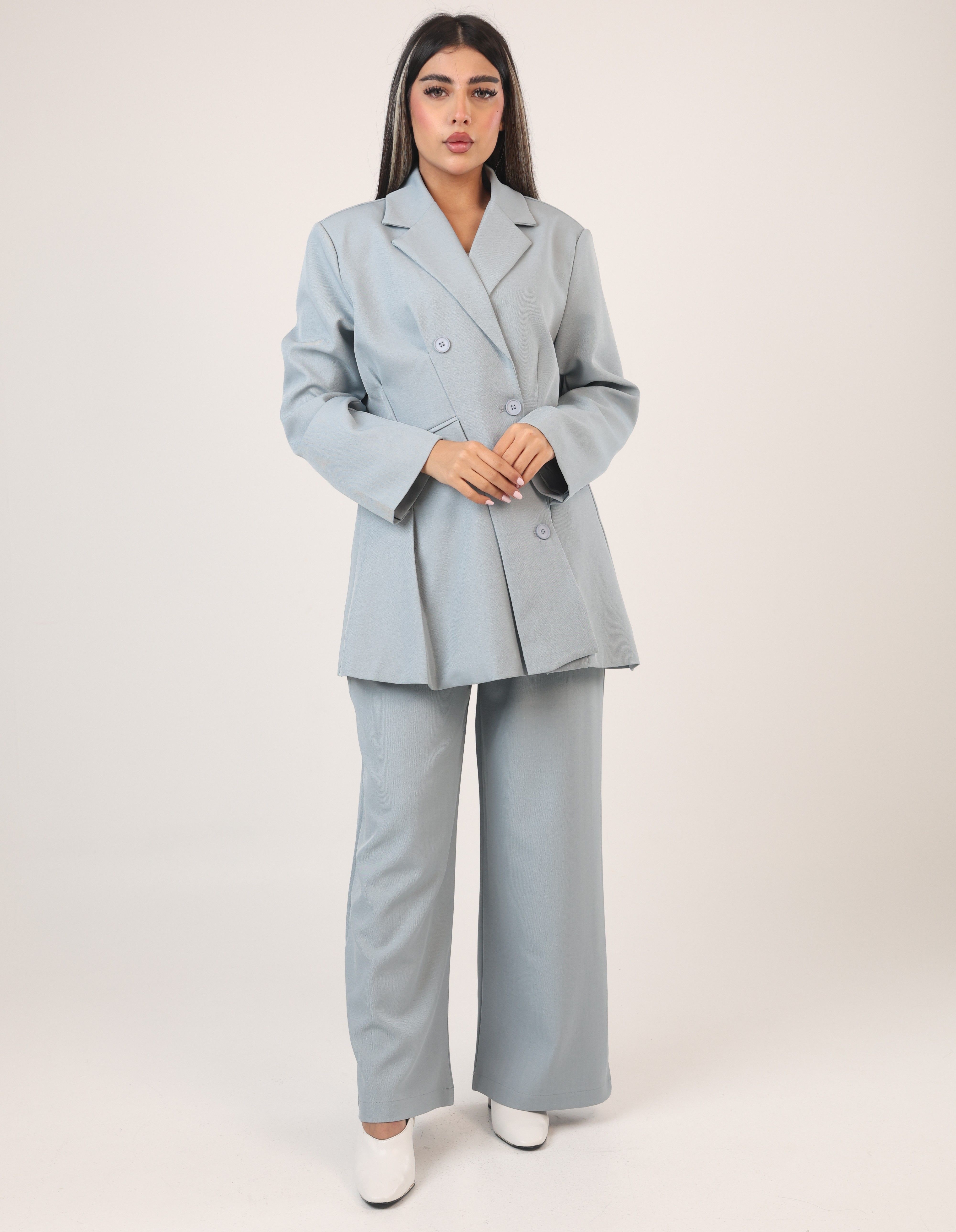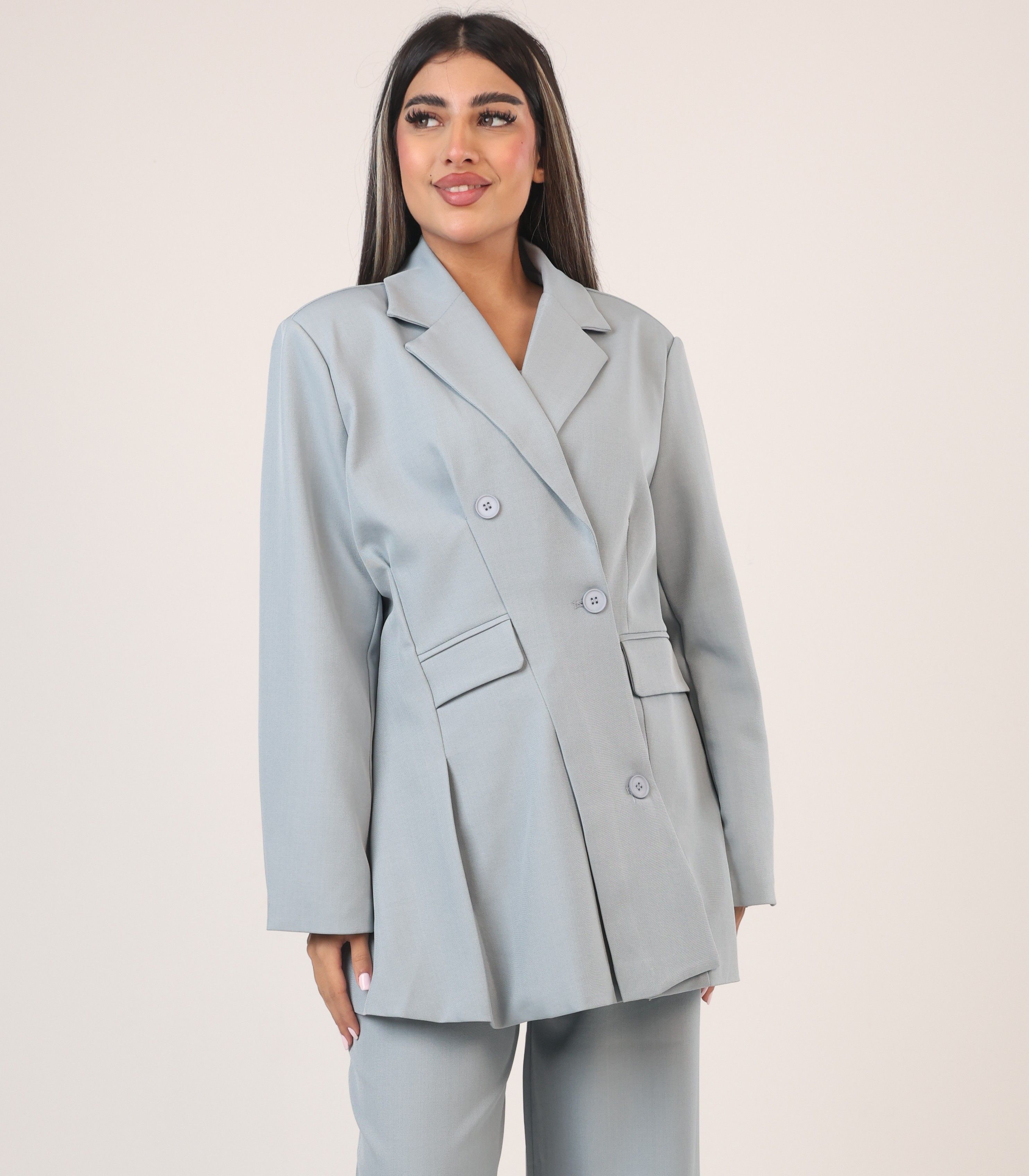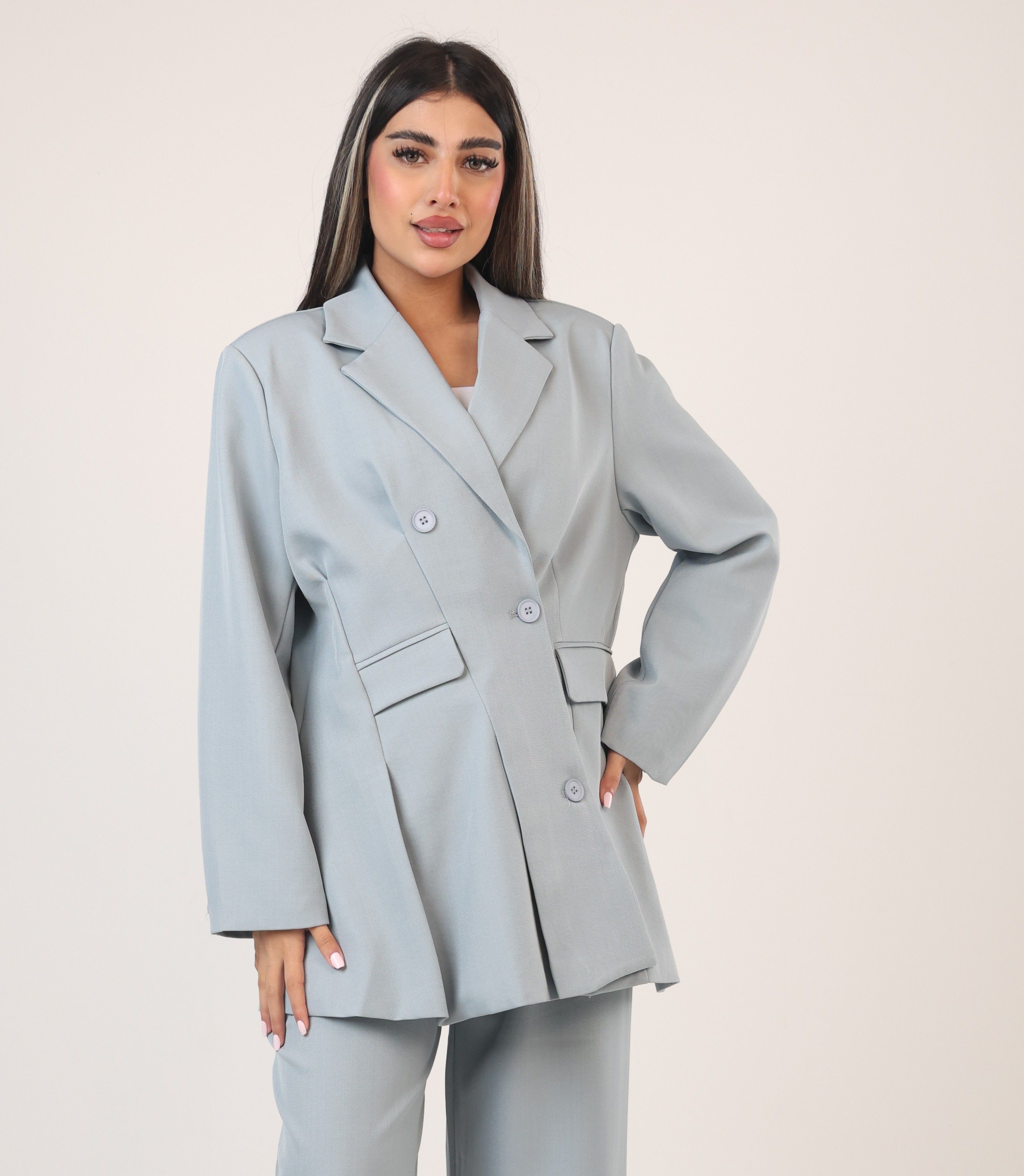 112526 - Smokey Blue Asymmetrical buttons Jacket