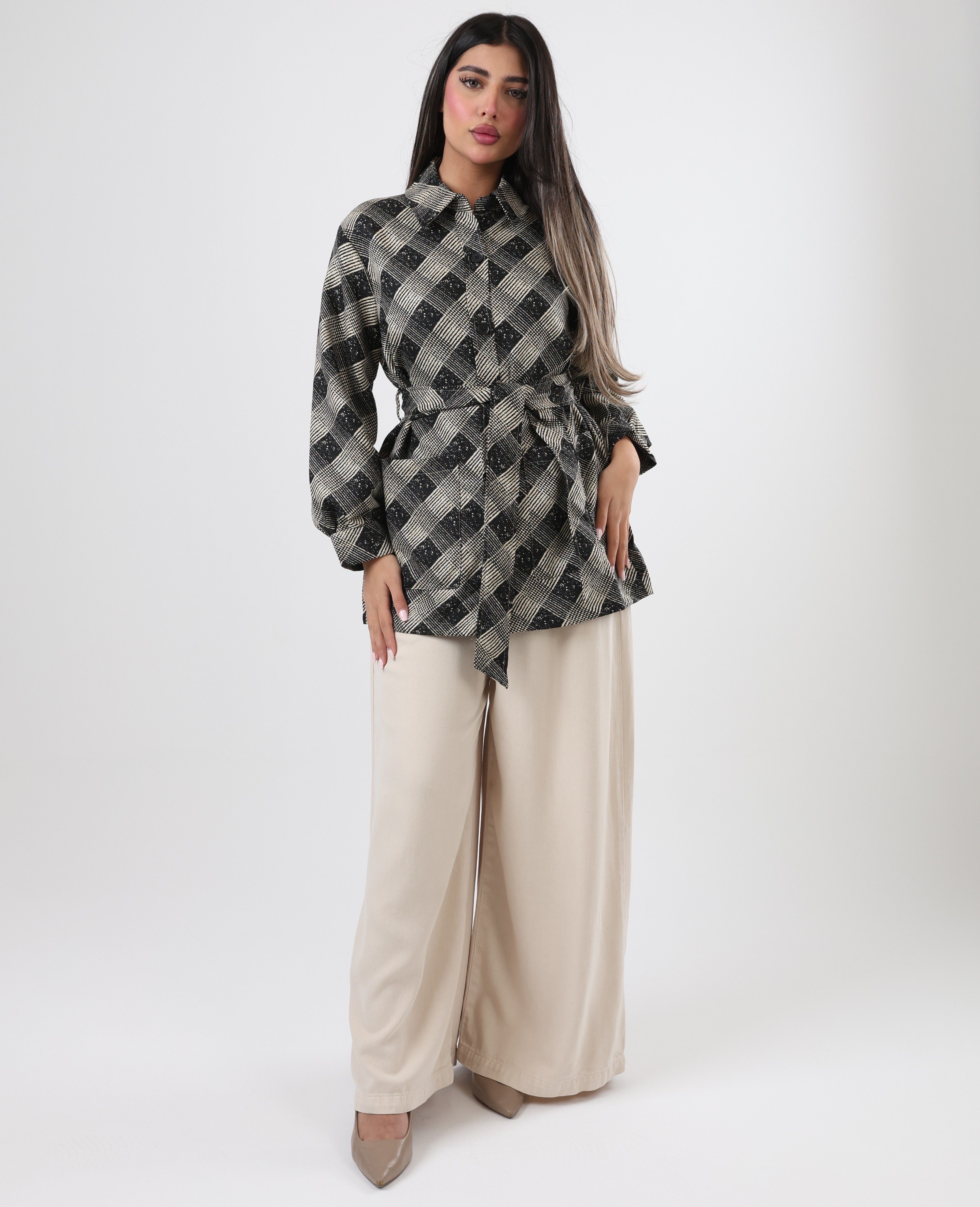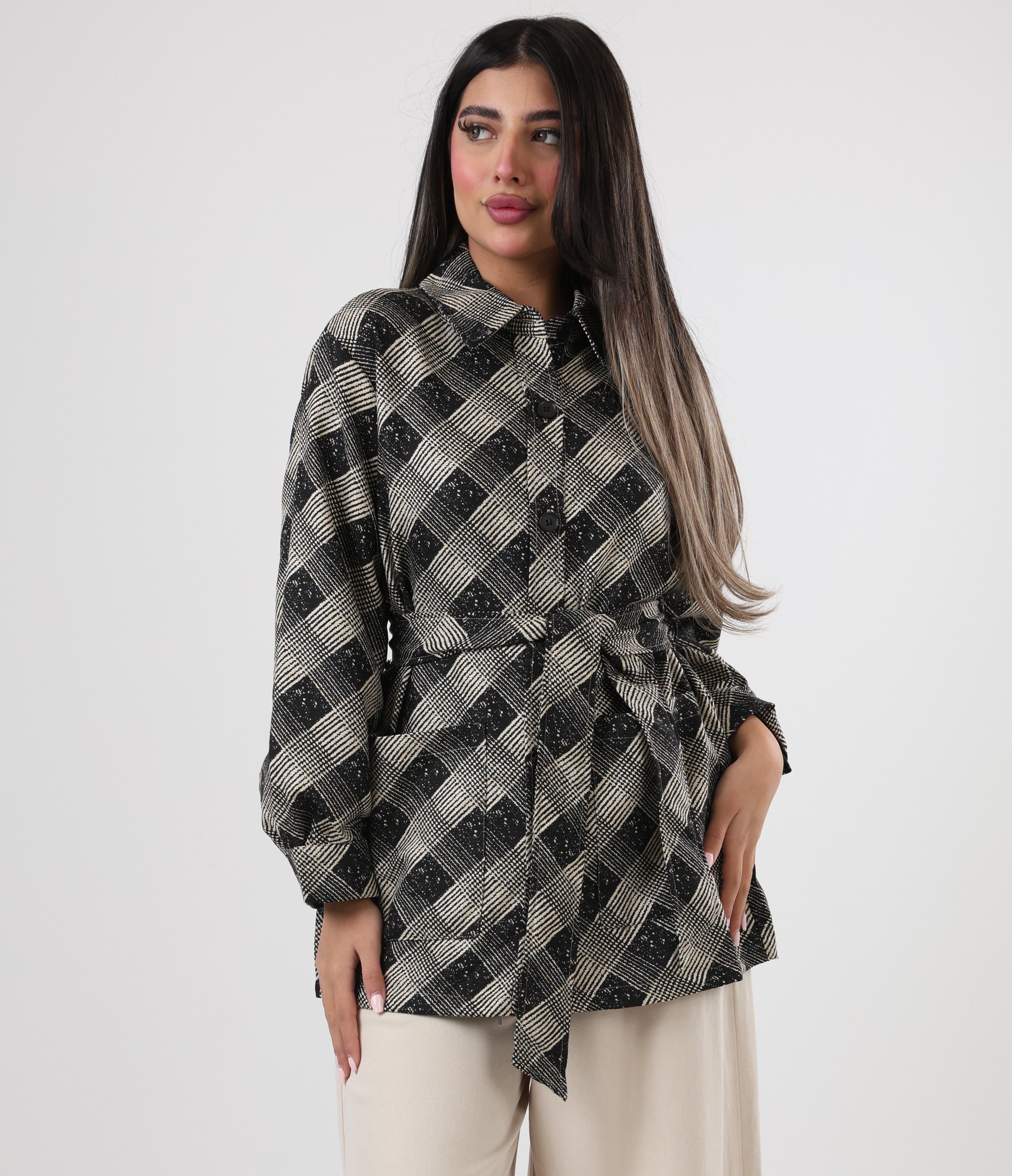 122512 - Black belted plaid waist Jacket