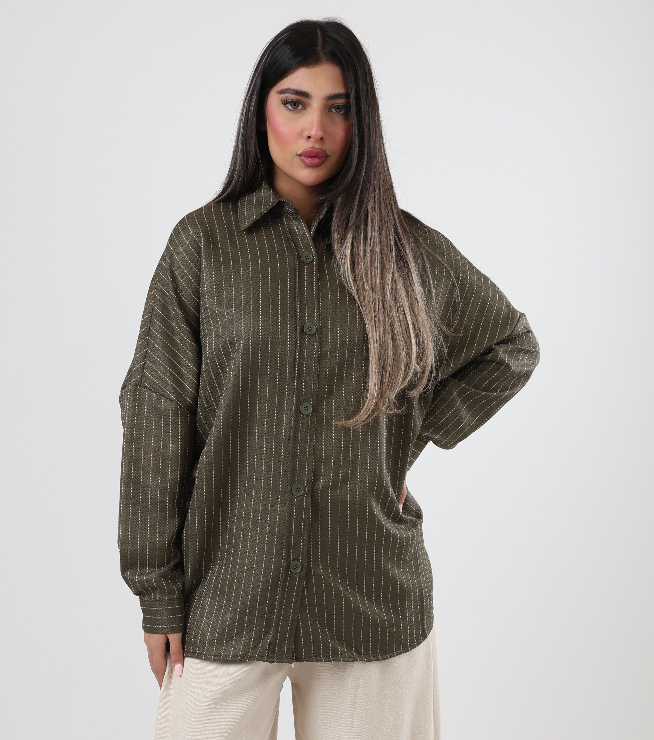 122519- Olive pinstripe shirt