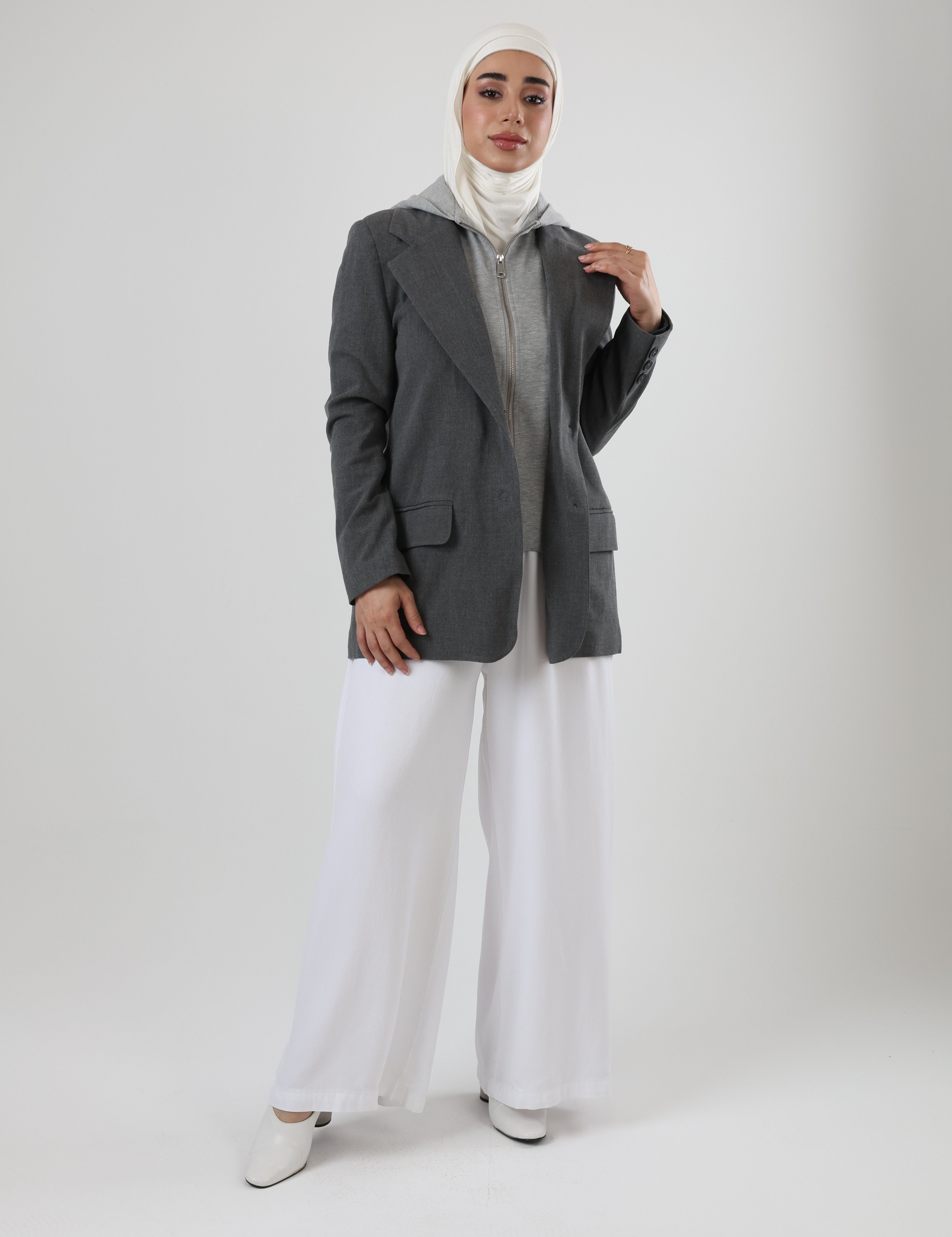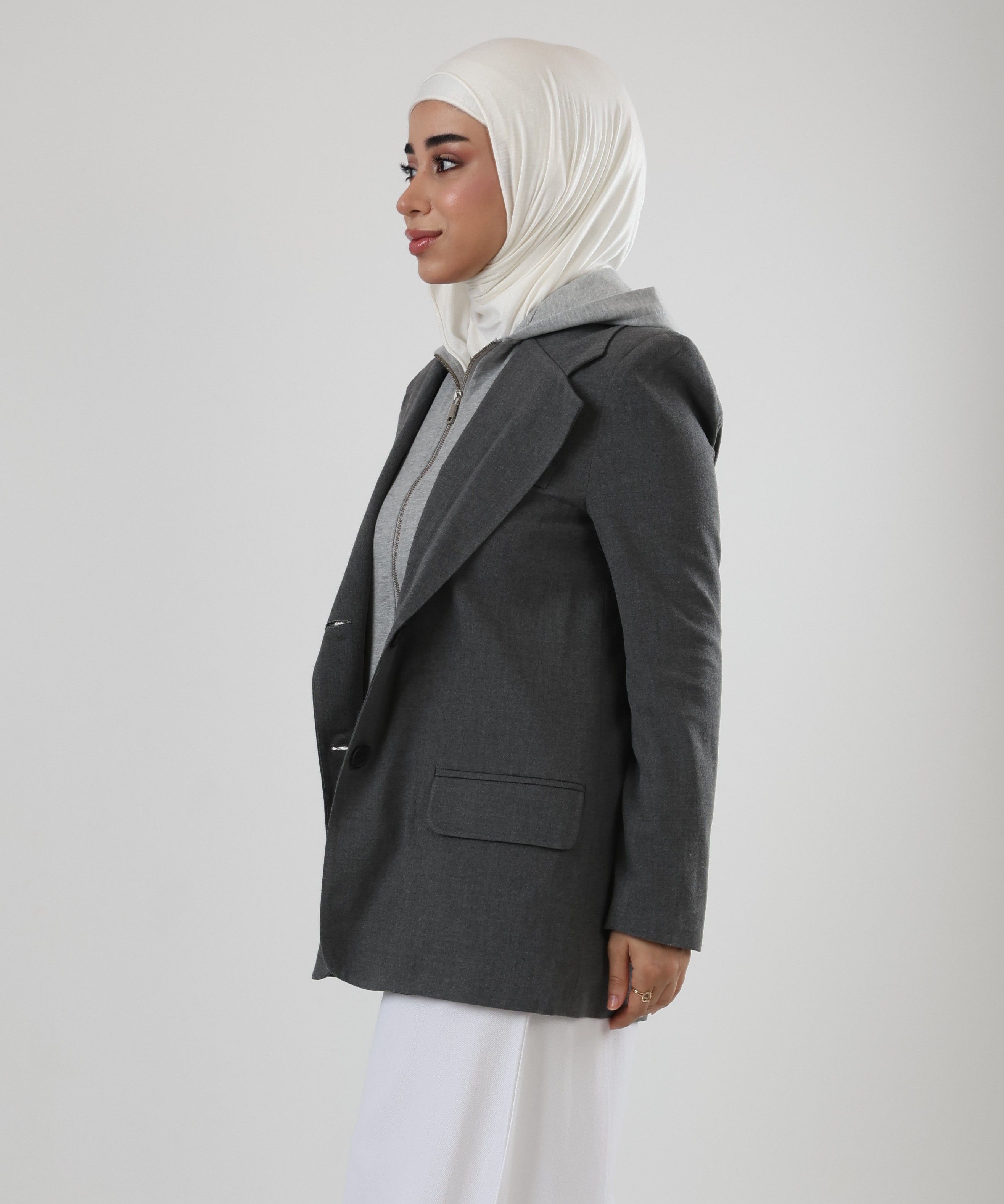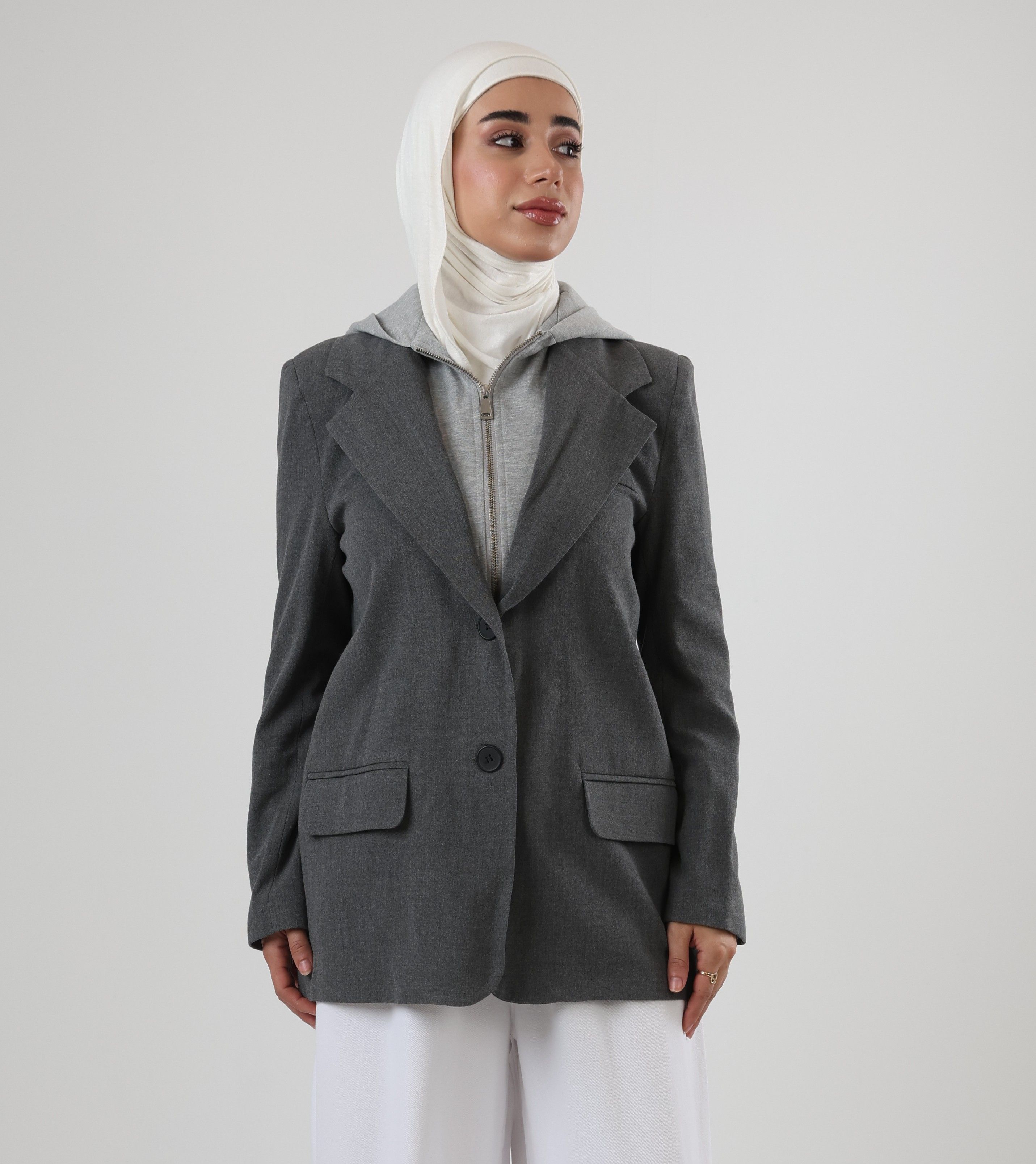 122525 -Grey Dual Layer hoodie Blazer