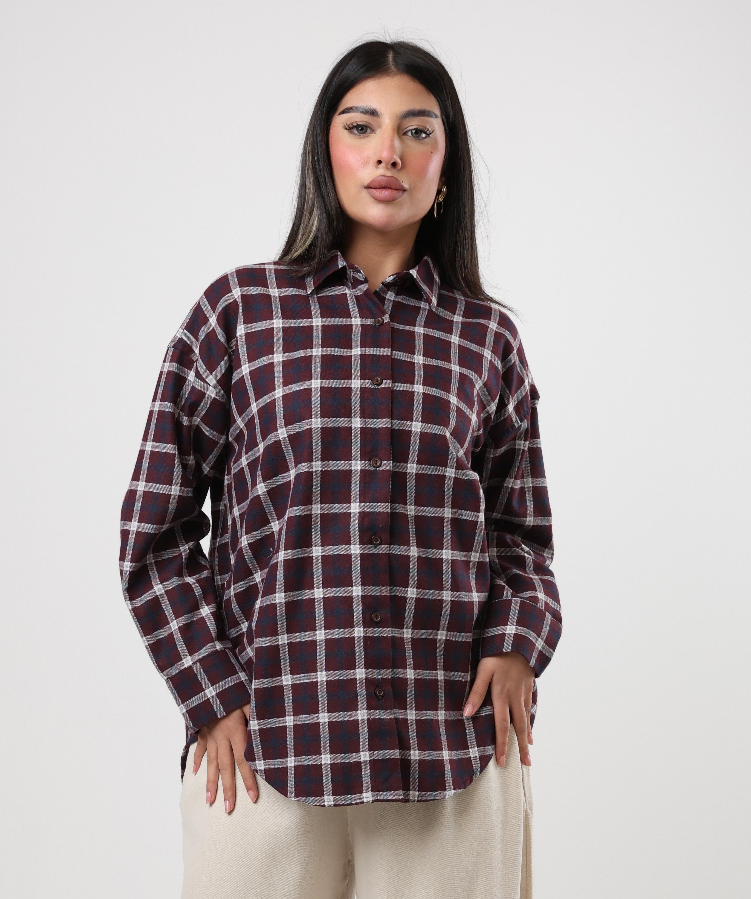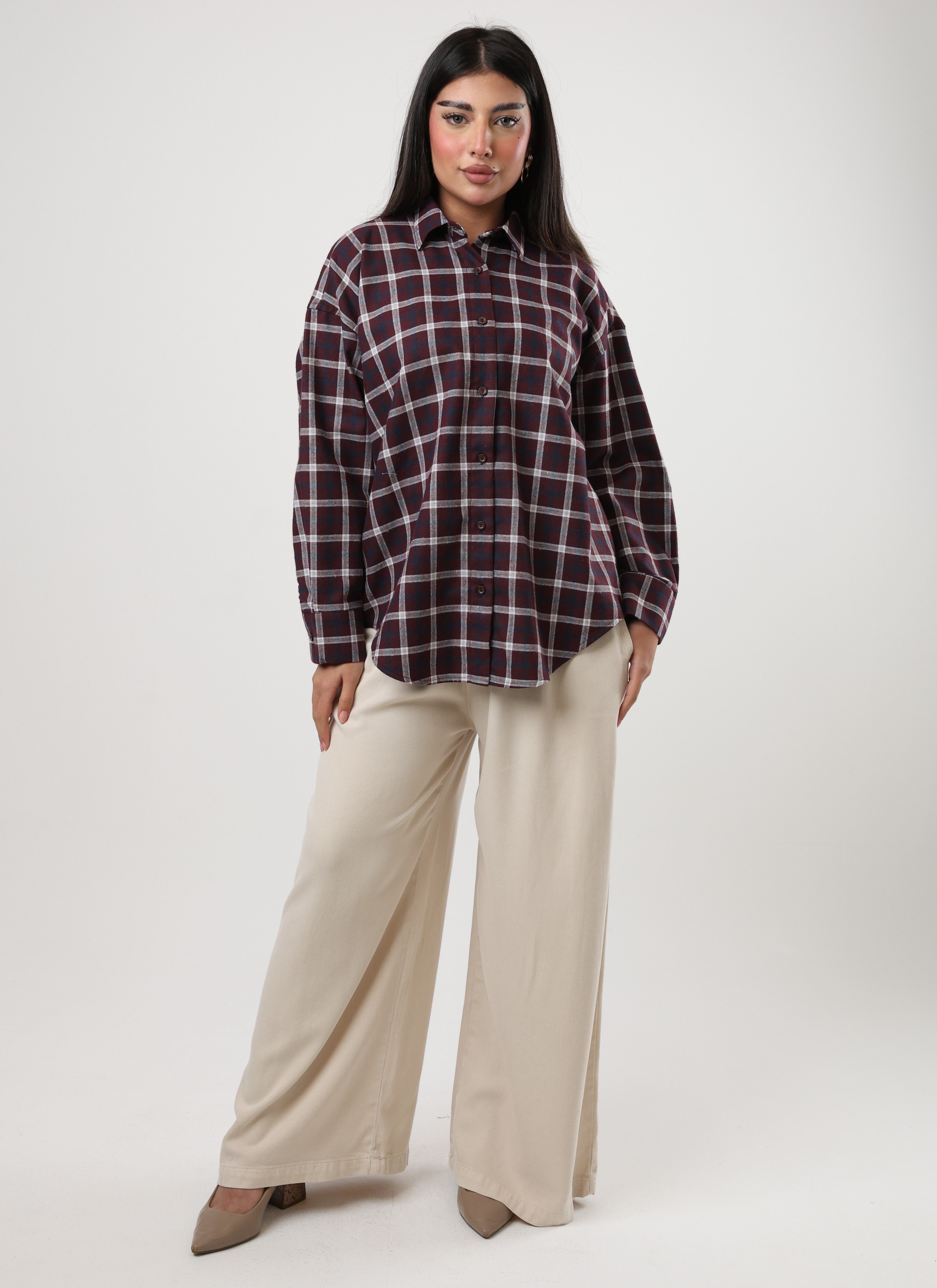 122558 - Maroon & white Checkered Shirt