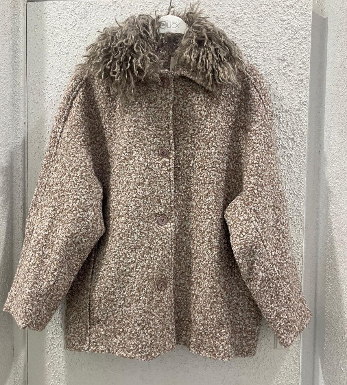 122583 - Taup Wool Jacket with Fur Collar