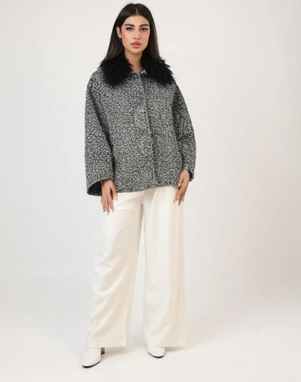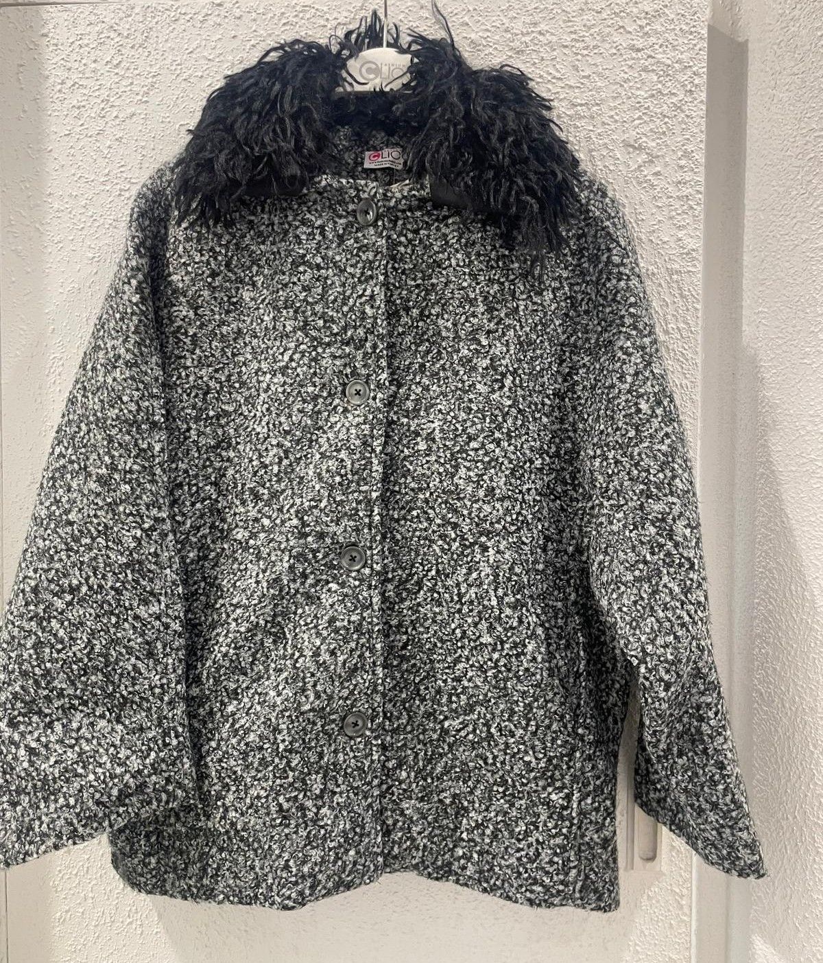 122584 - black Wool Jacket with Fur Collar