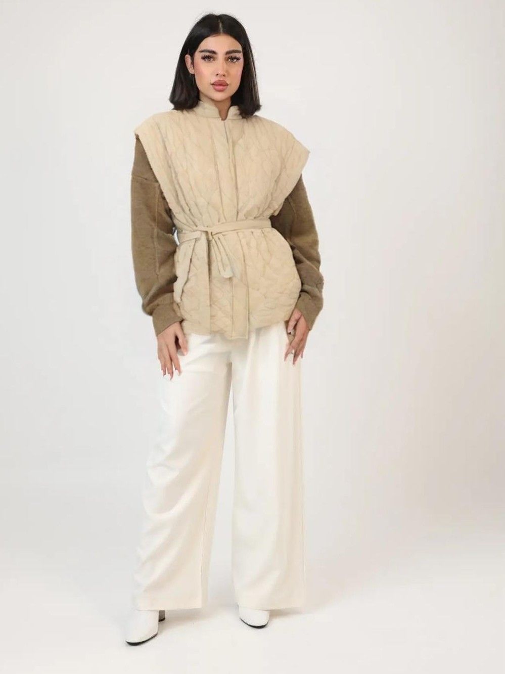 122589 - Off white quilted belted vest