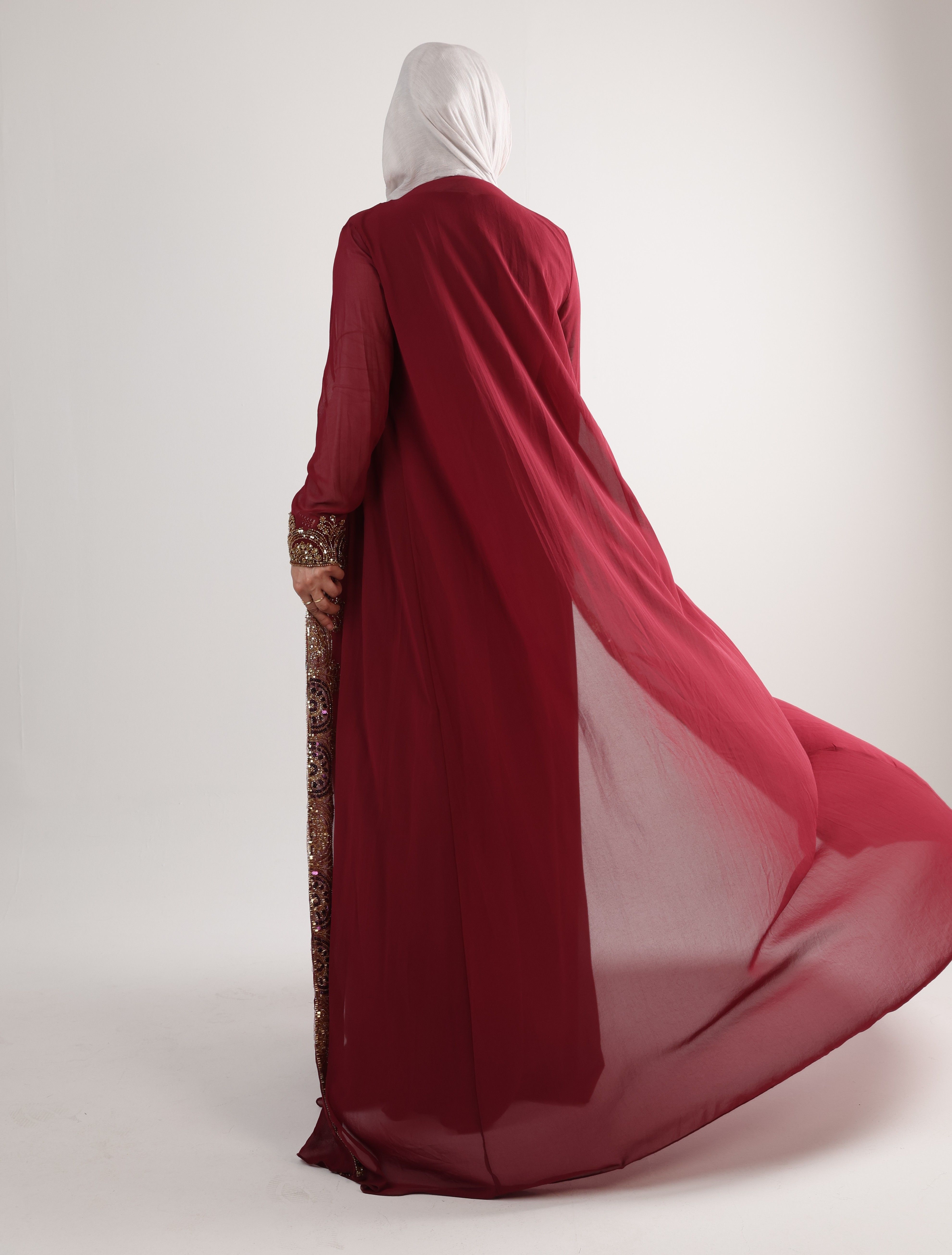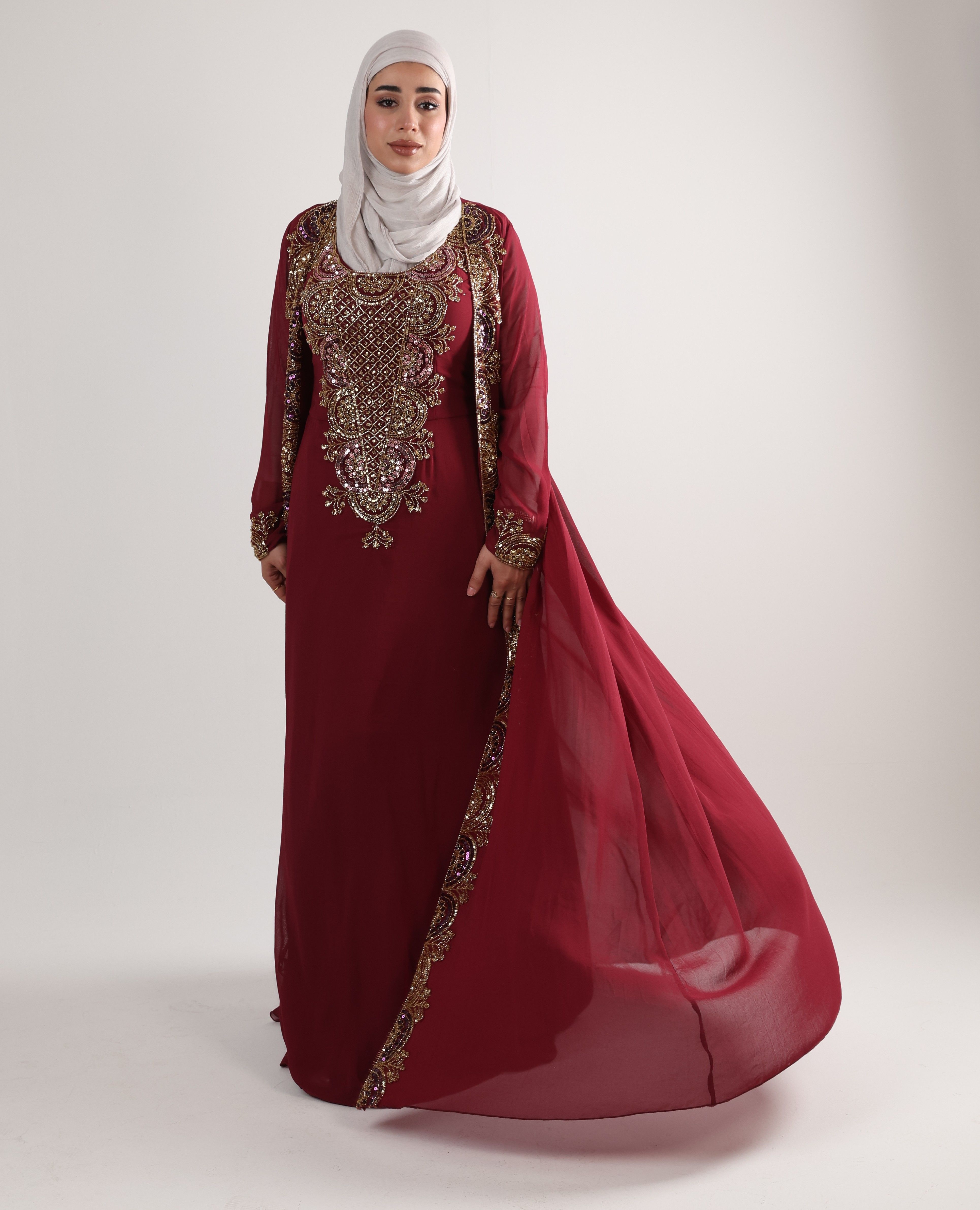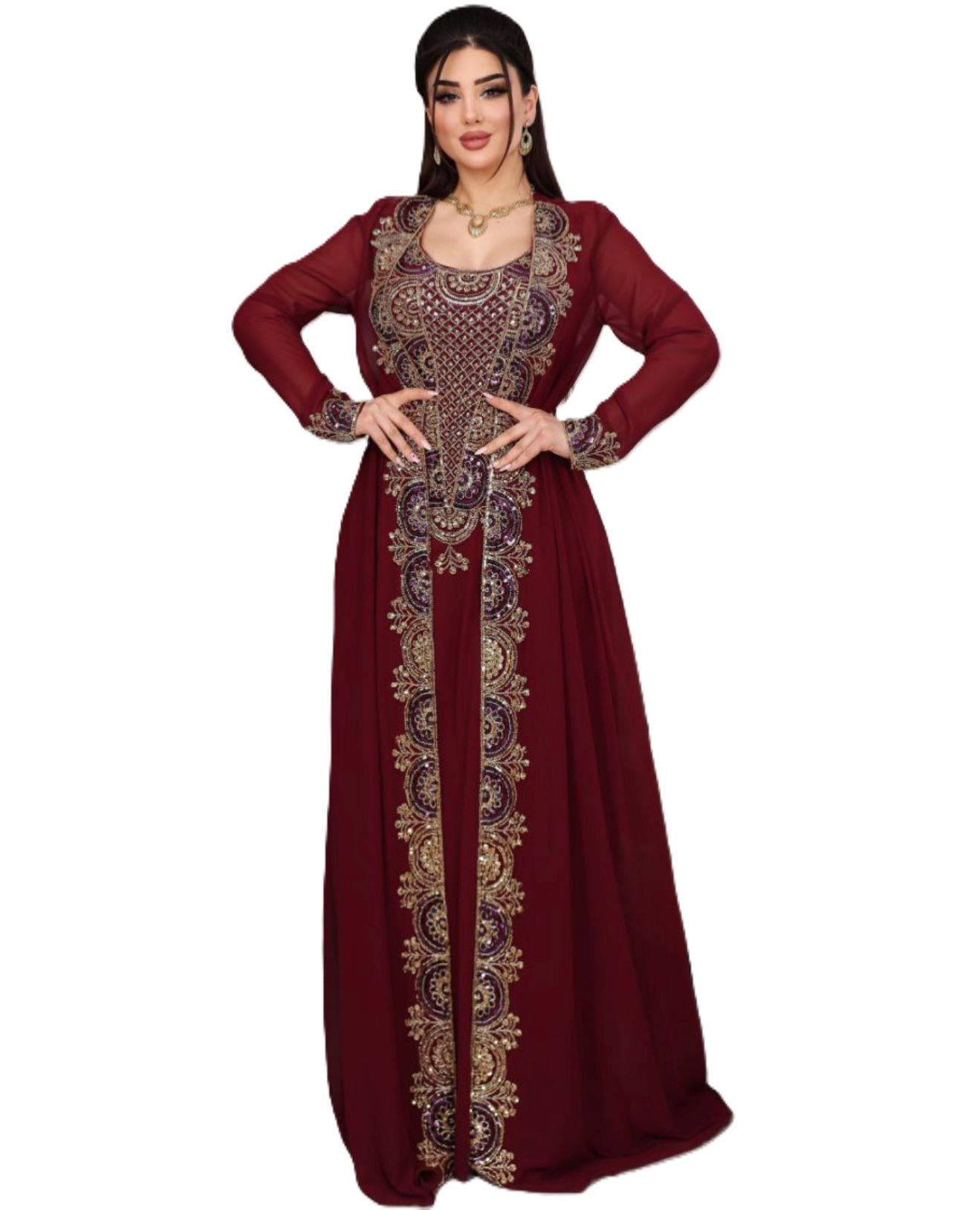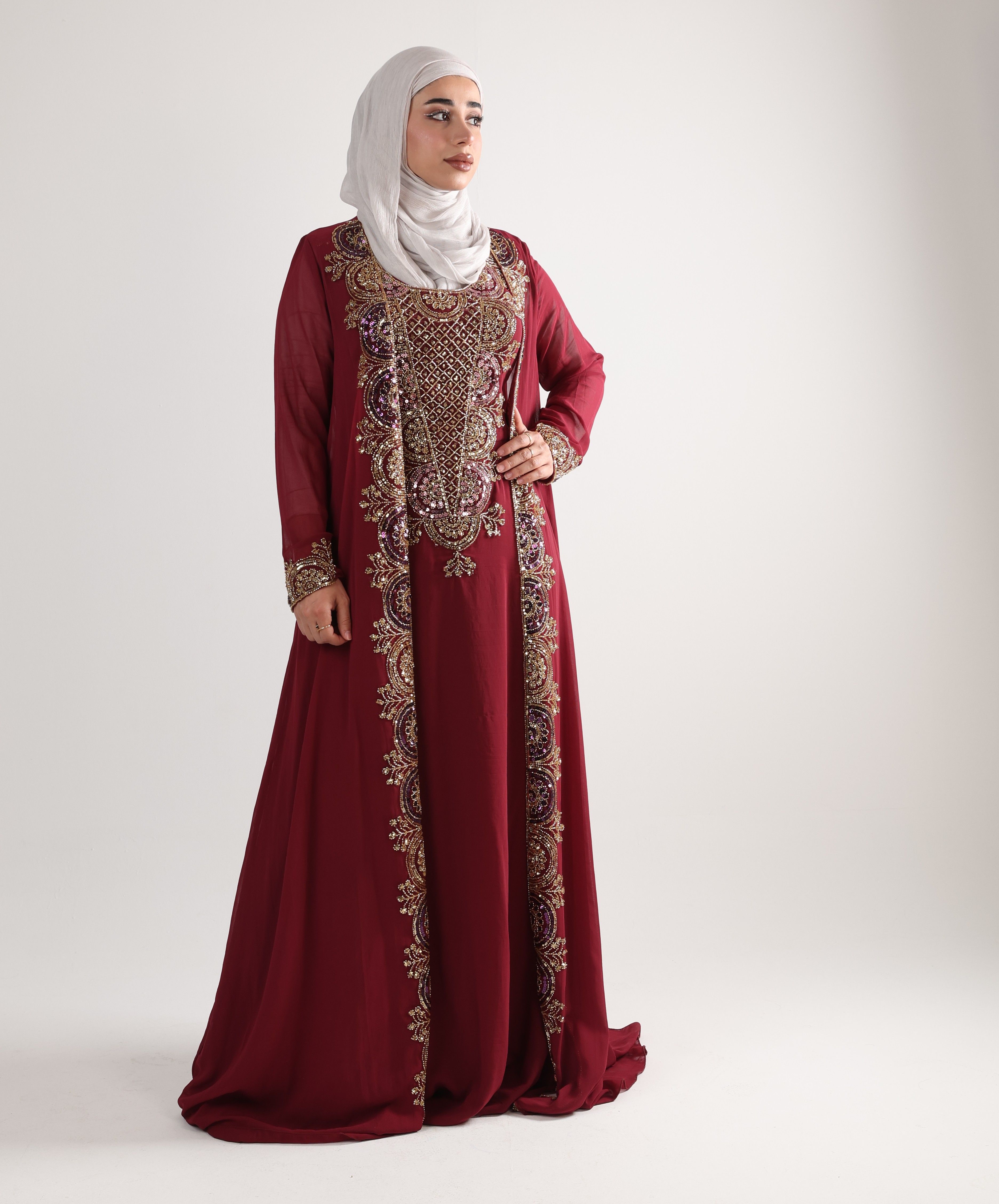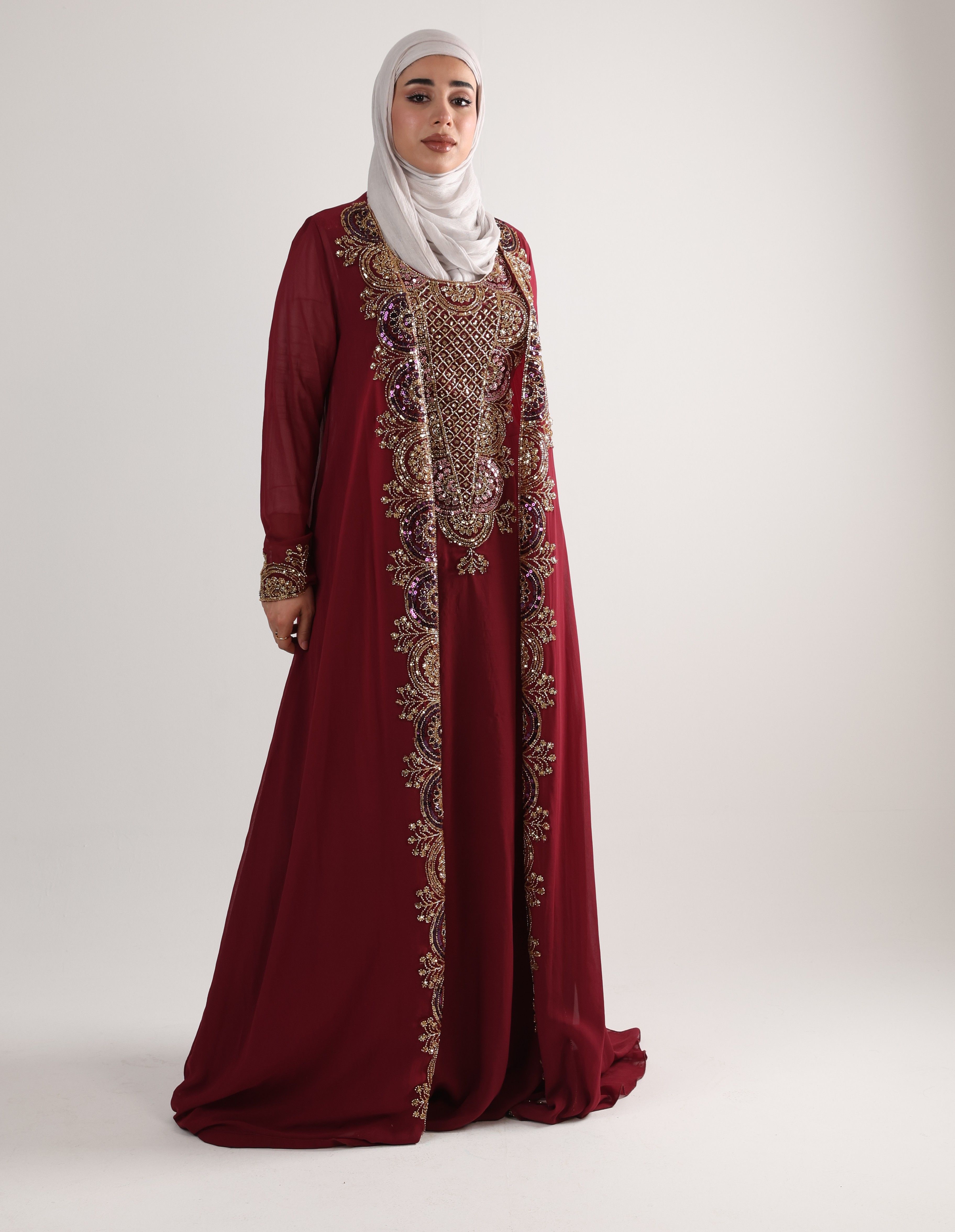 1225106 - Maroon & gold 2 PCS Kaftan