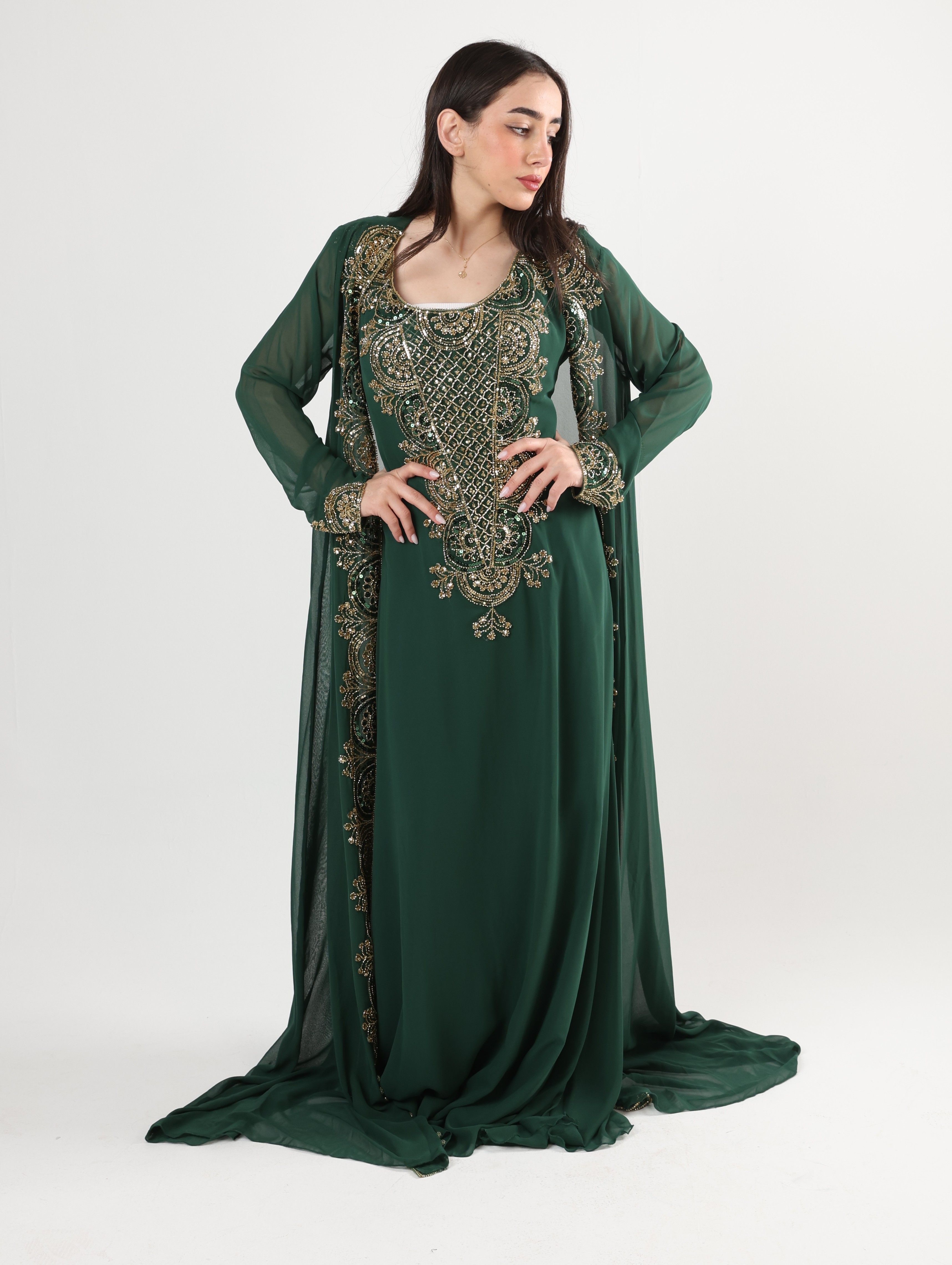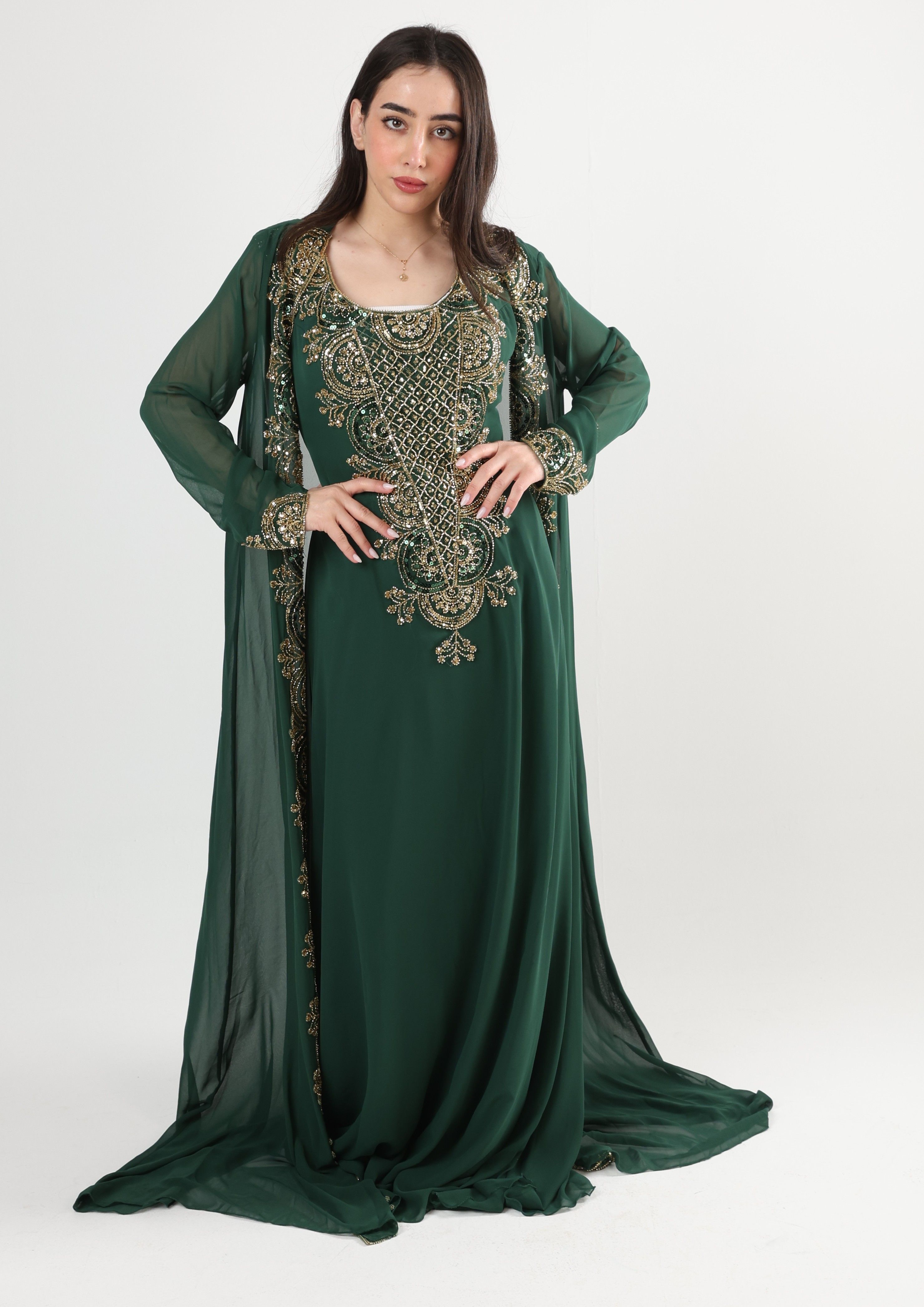 1225107 - Green & Gold 2 PCS Kaftan