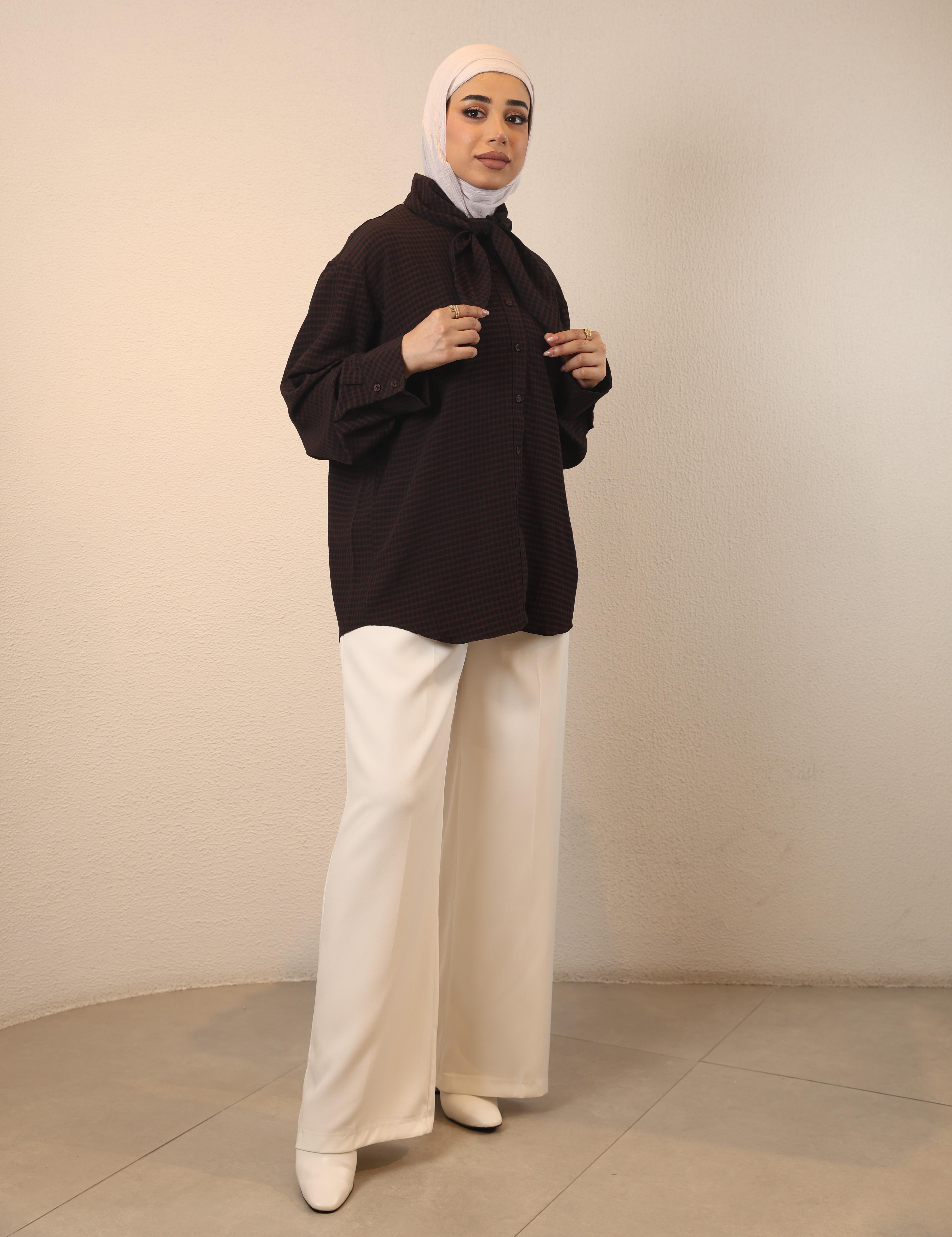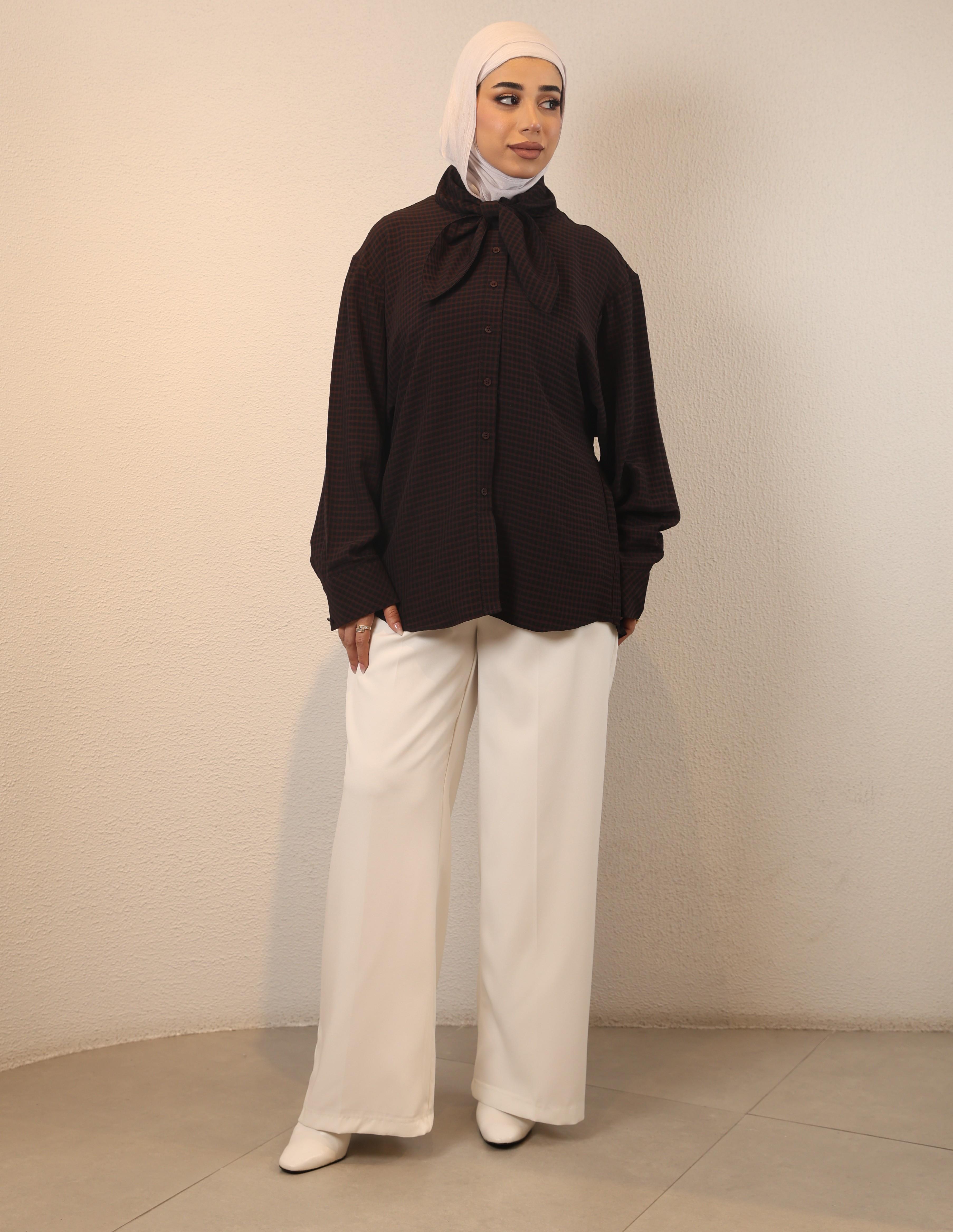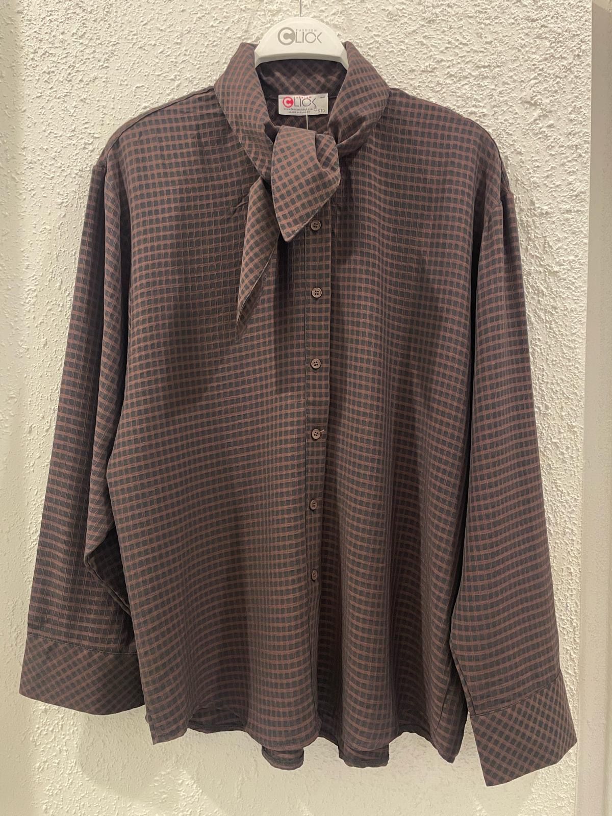 0126129 - brown Tie Neck shirt