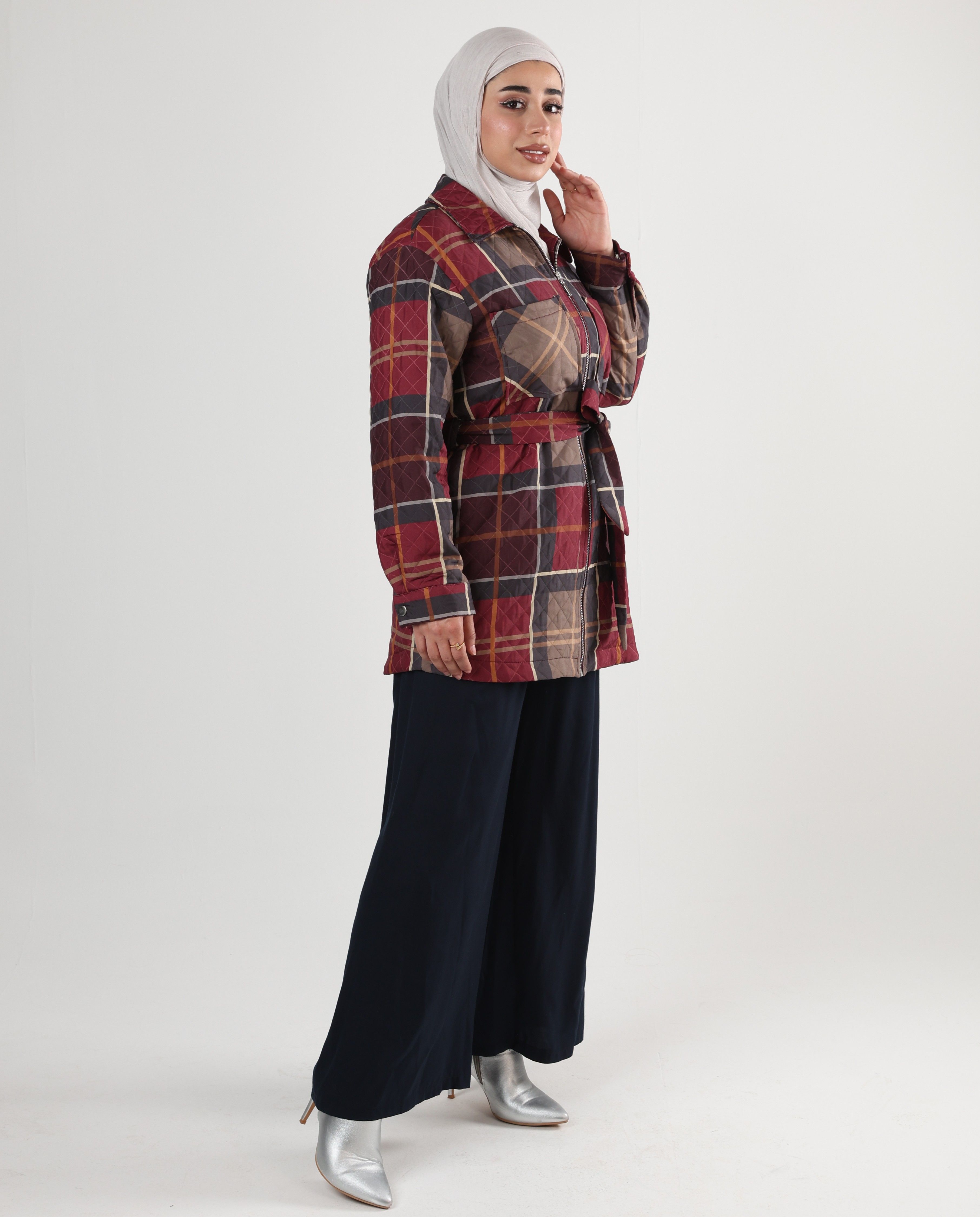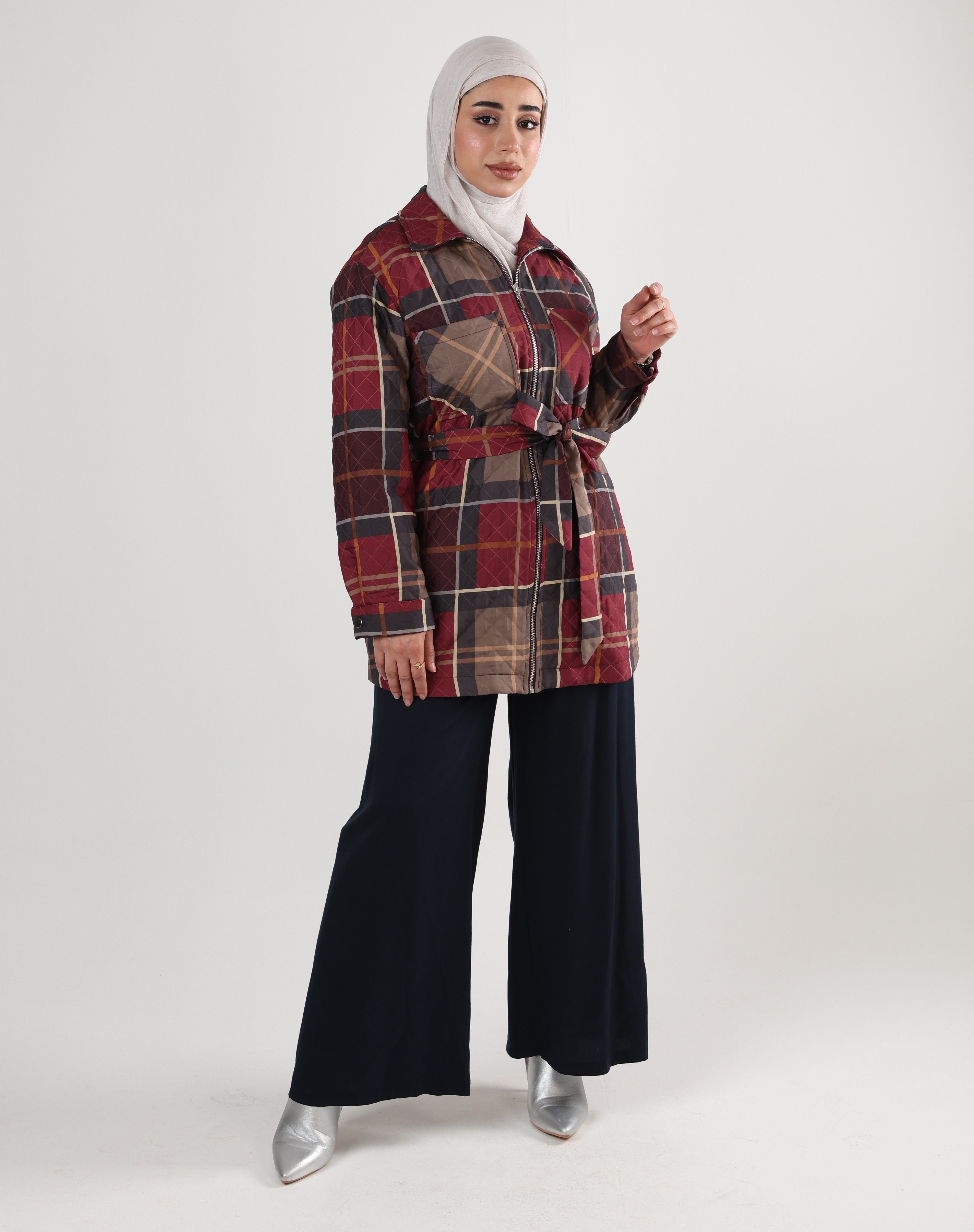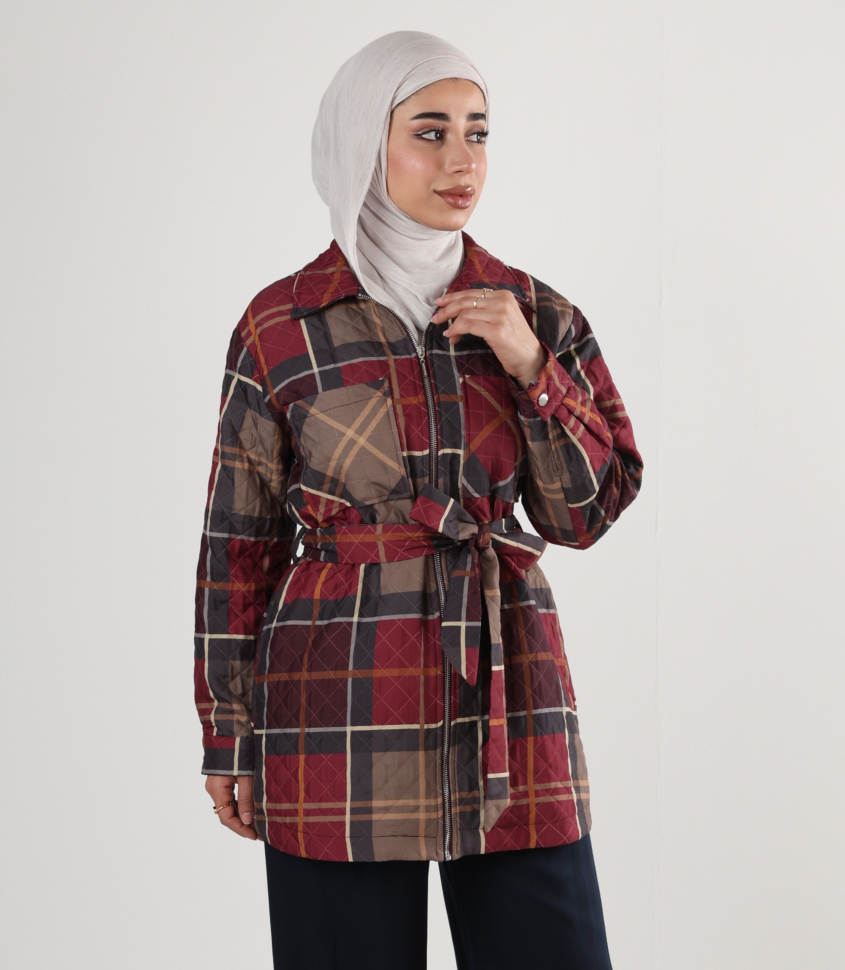 0126133 - Red & Navy Oxford quilted plaid zip jacket
