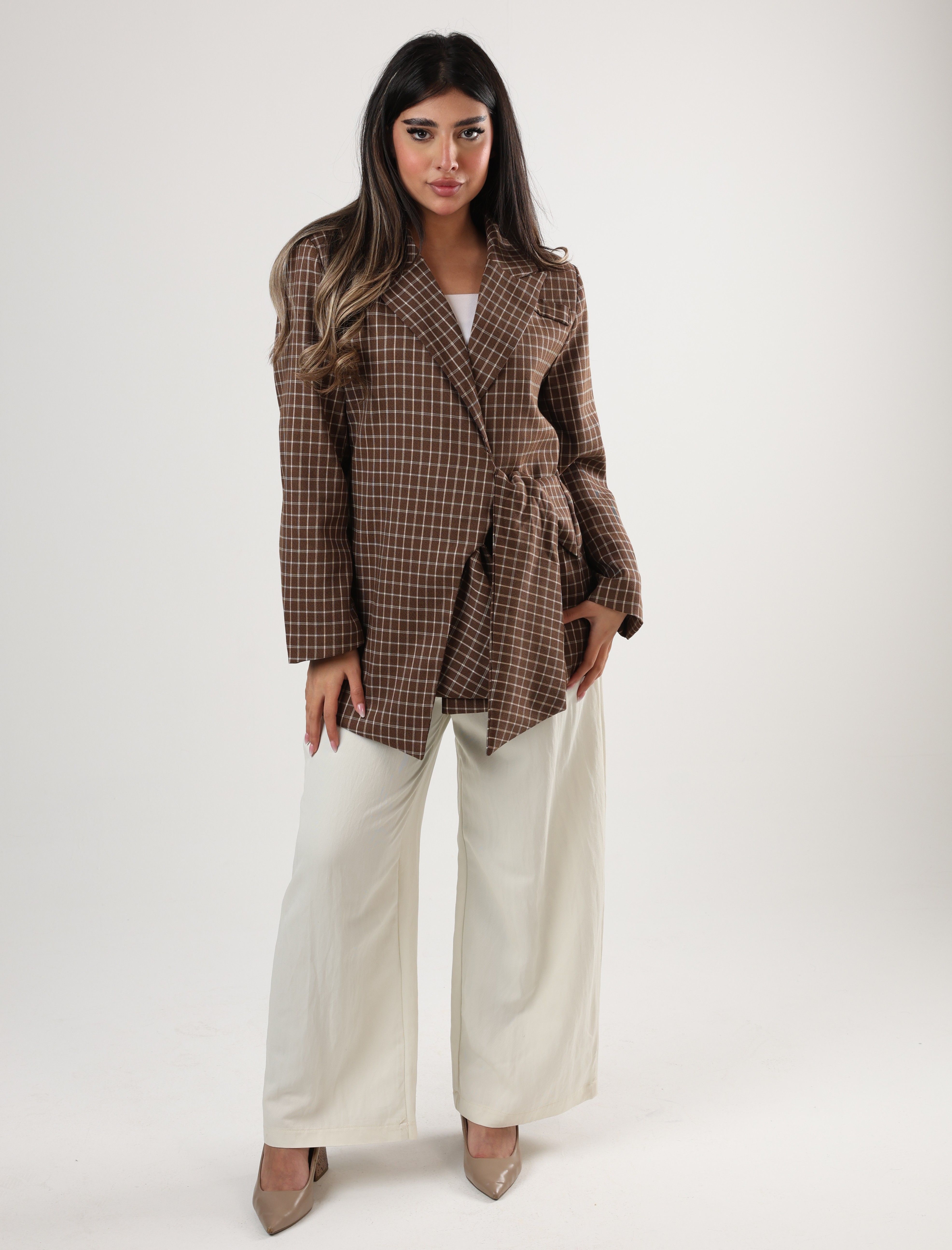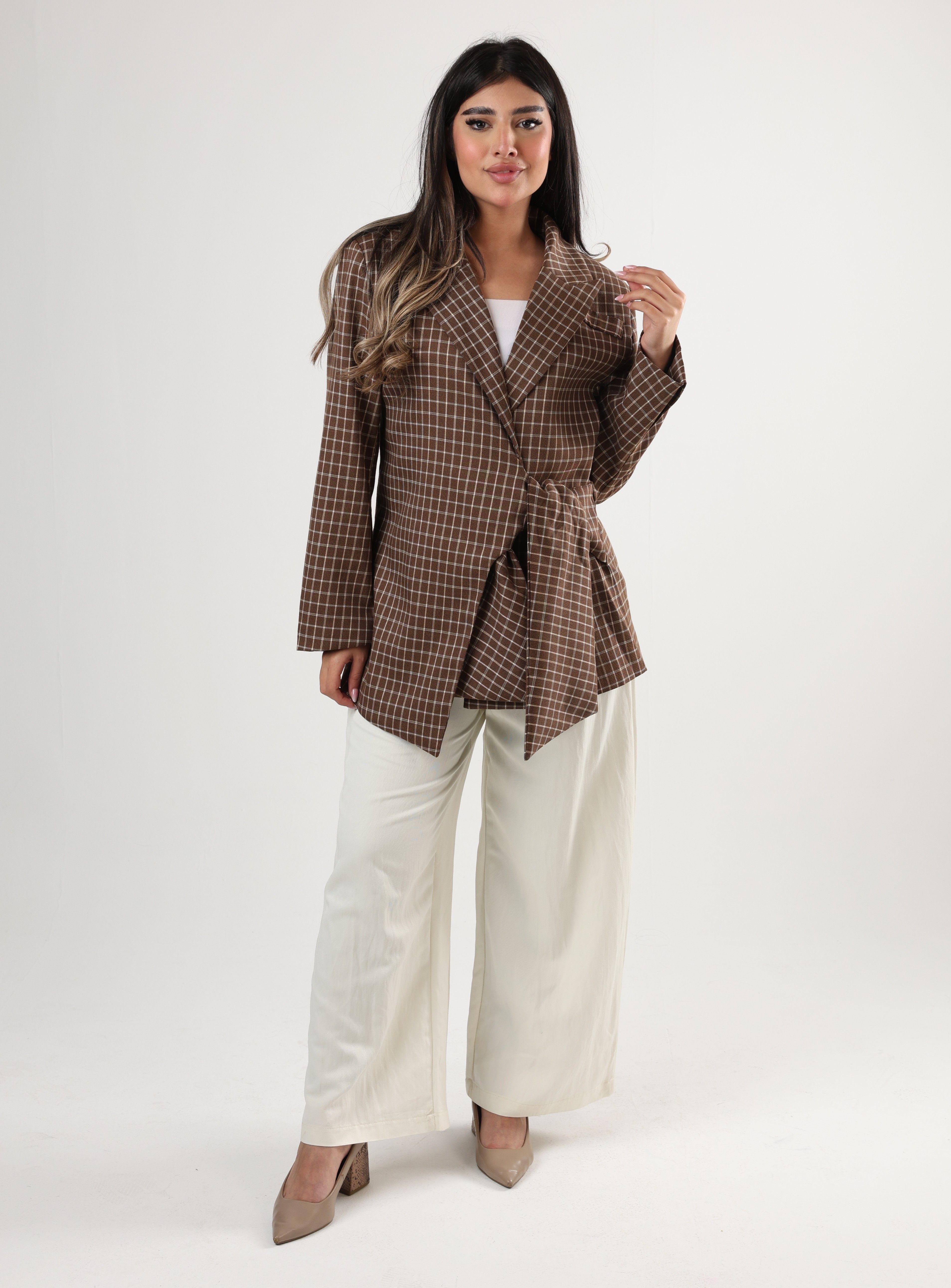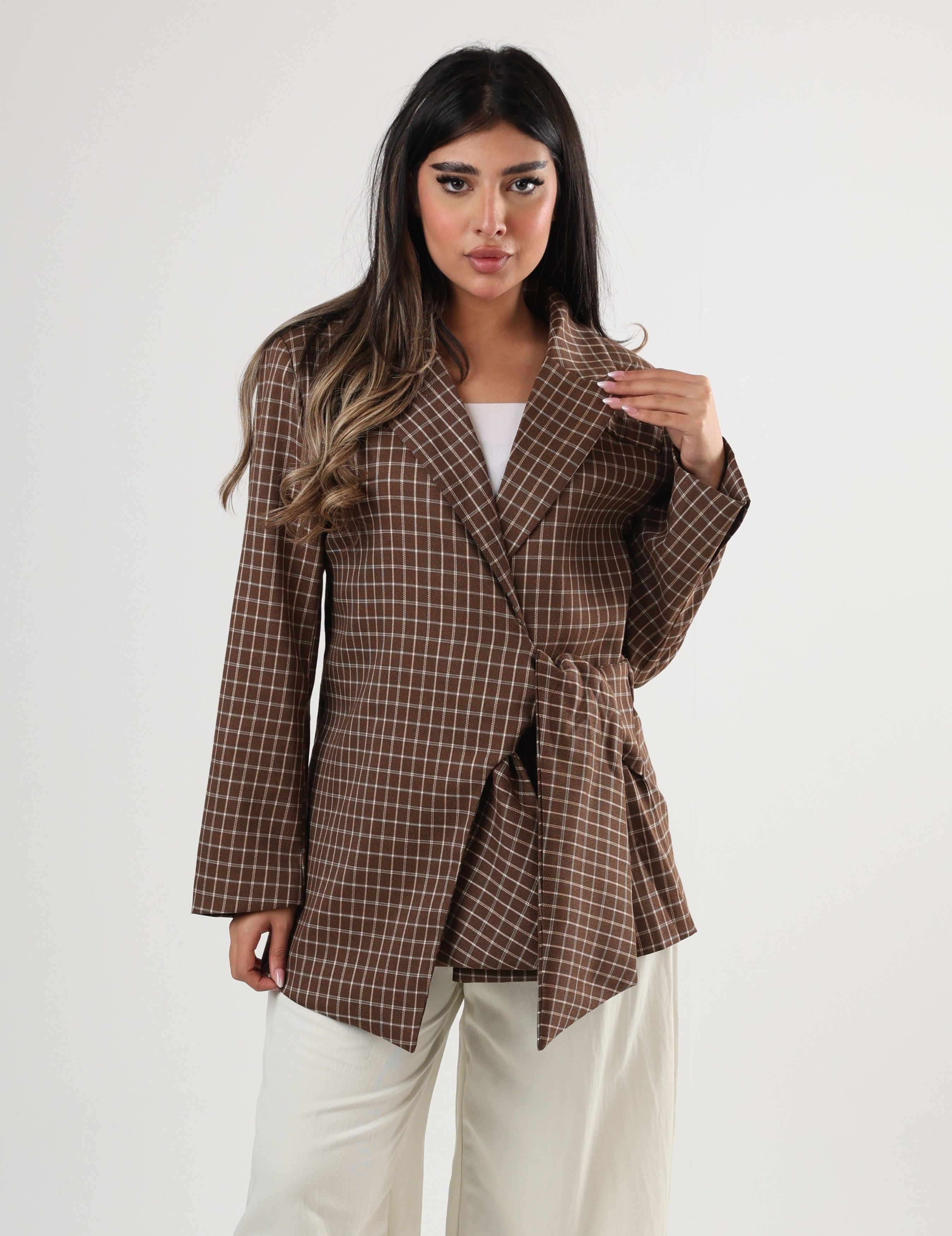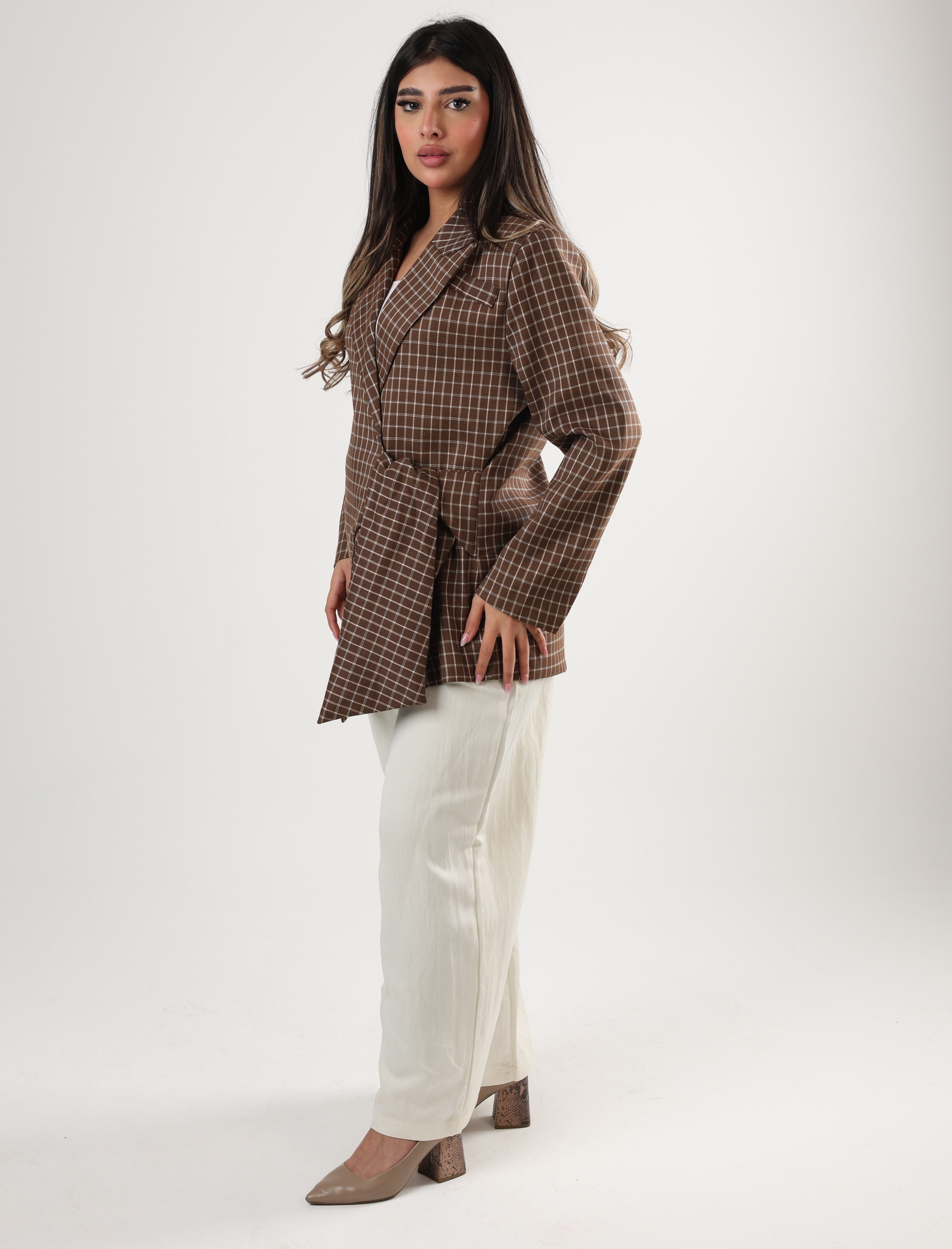 0126145 - Brown plaid side tie Jacket