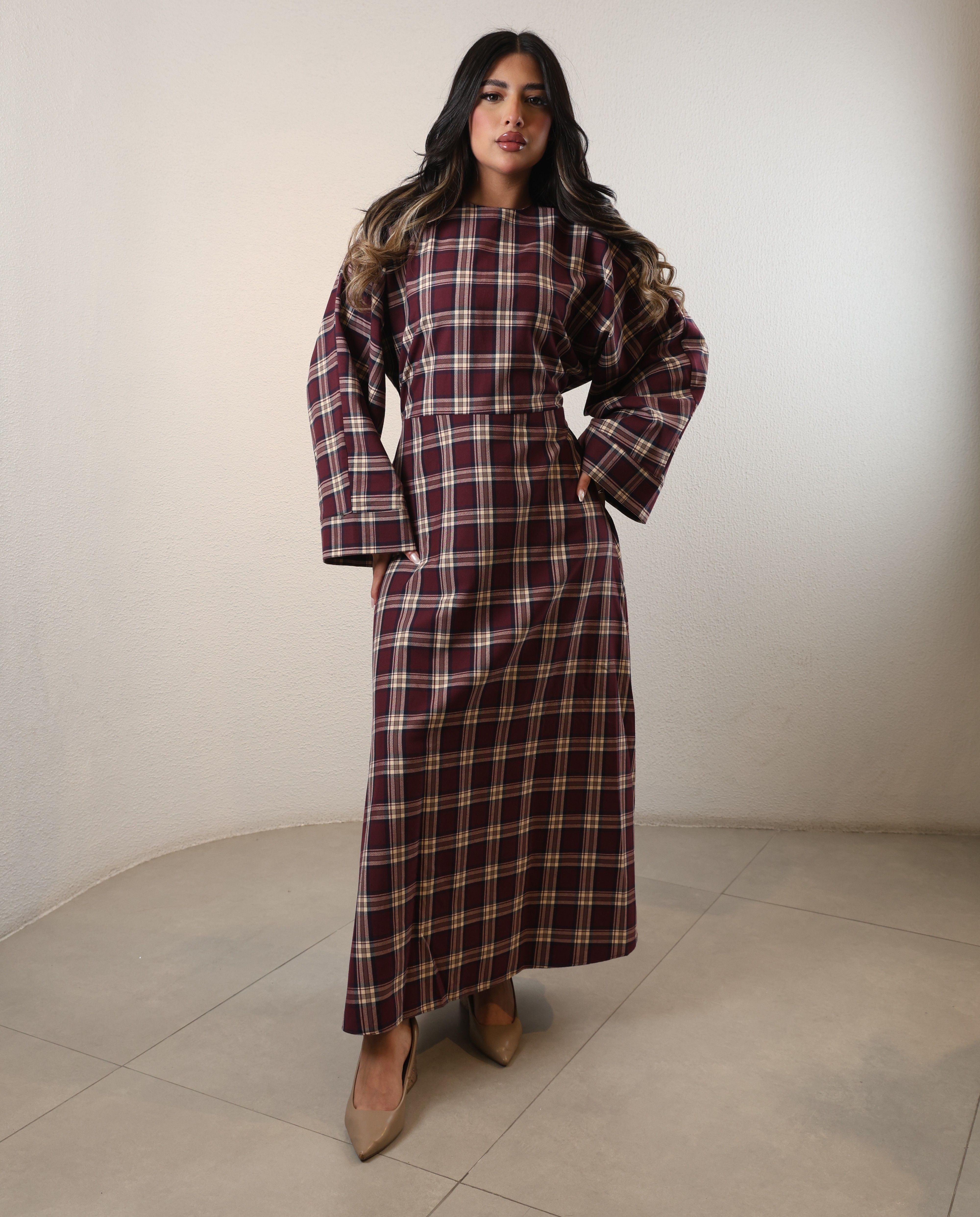 022604 - Maroon Plaid dress