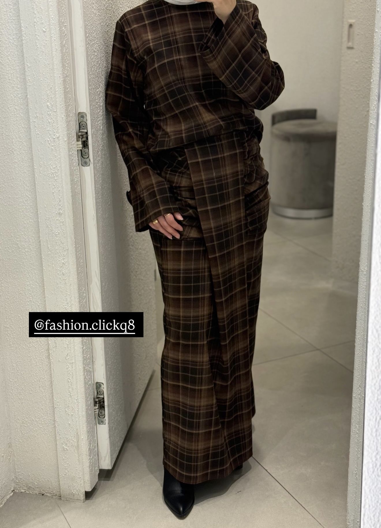 022607 - Brown Plaid Top and skirt