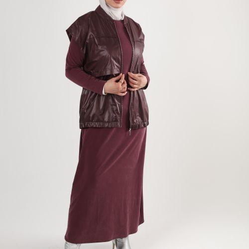 0126137 - Maroon modern set, vest & dress