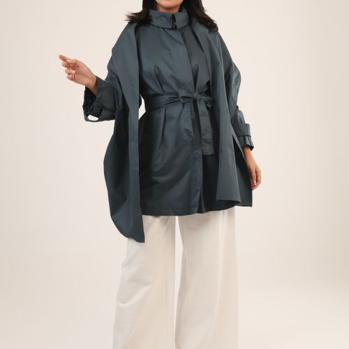 102504 - Teal Blue scarf coat