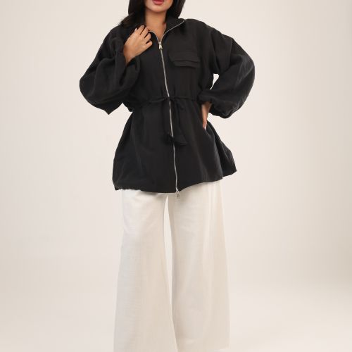082583 - Black zipper oversized Jacket