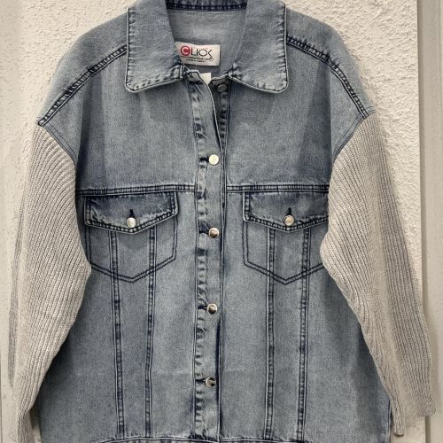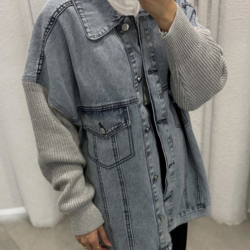 102529 - Blue Hybrid knit sleeve denim Jacket