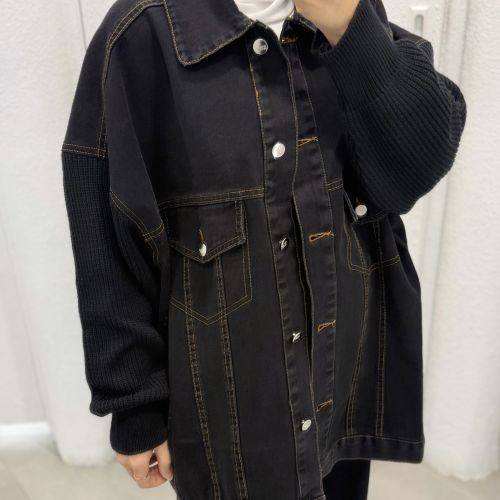102530 - Black Hybrid knit sleeve denim Jacket