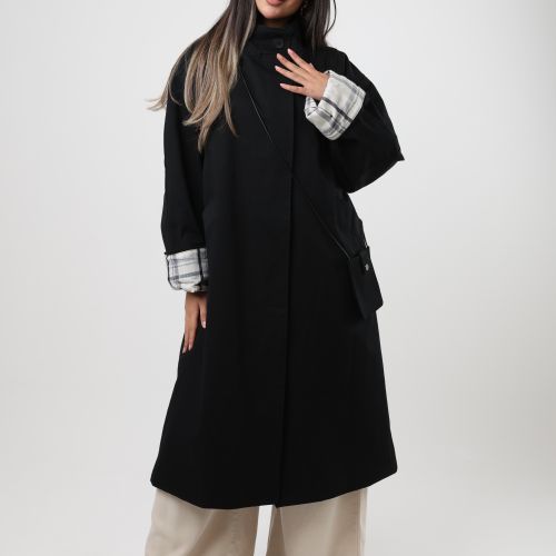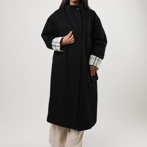 112542 - Black long coat Plaid cuff