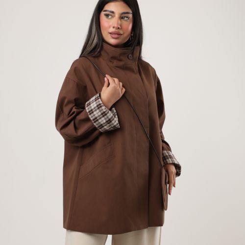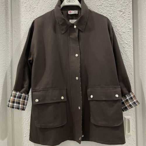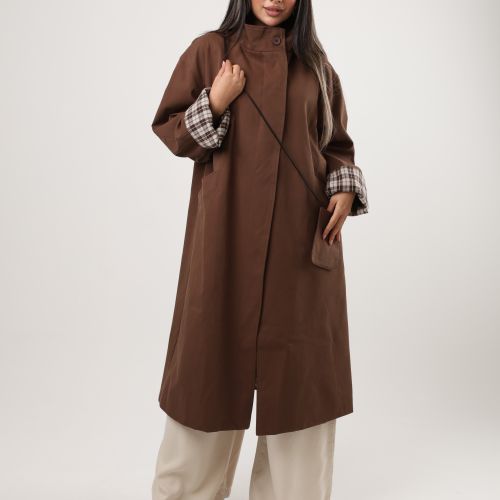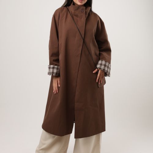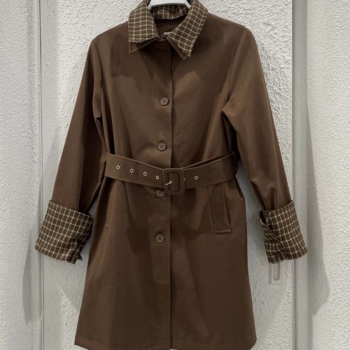 122577 -Brown long coat Plaid cuff