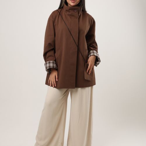 112544 - Brown short coat Plaid cuff