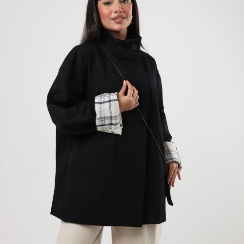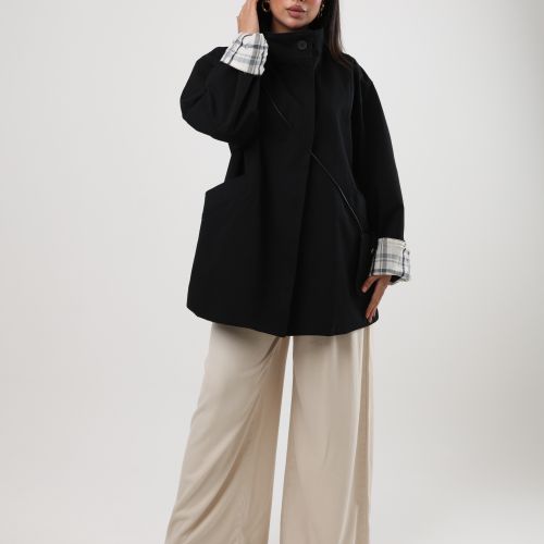 122578 - Black short coat Plaid cuff