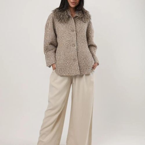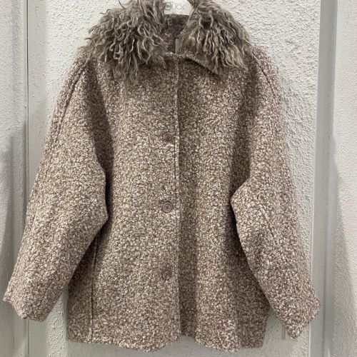 122583 - Taup Wool Jacket with Fur Collar