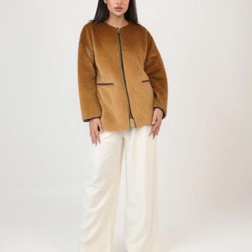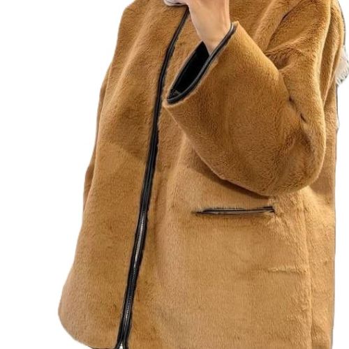 122582 - Camel white soft Faux fur zip Jacket