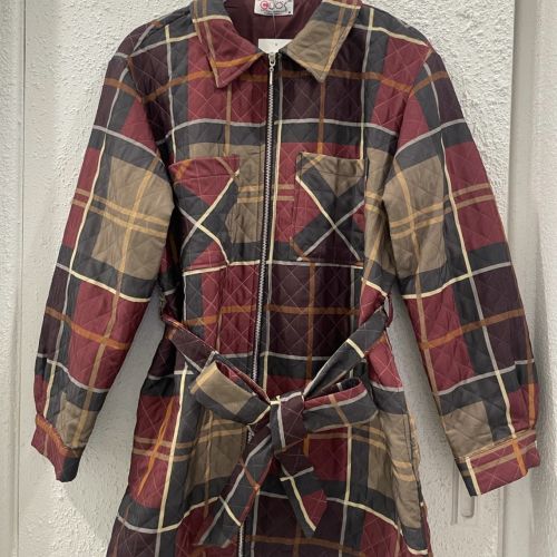 0126133 - Red & Navy Oxford quilted plaid zip jacket