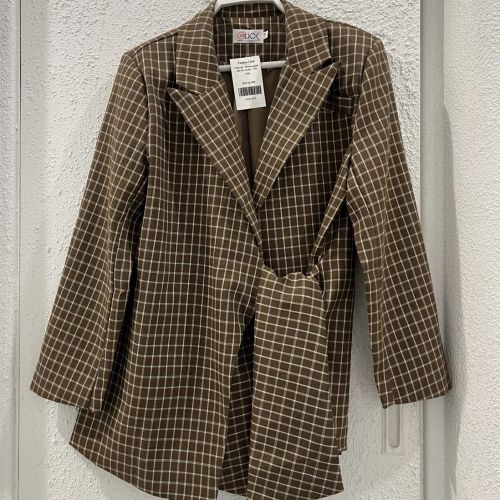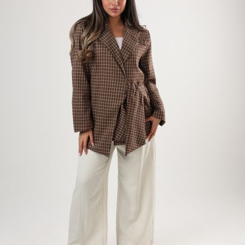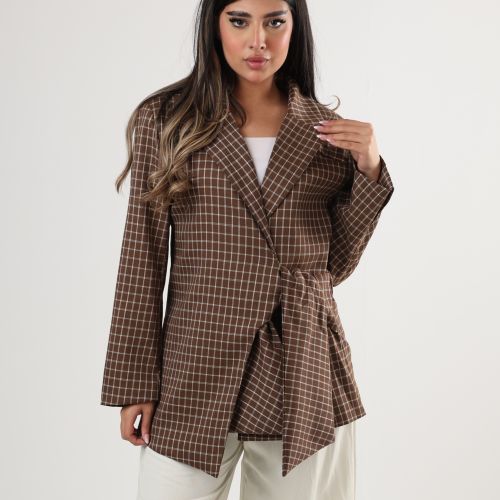 0126145 - Brown plaid side tie Jacket