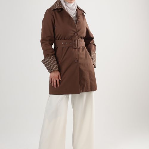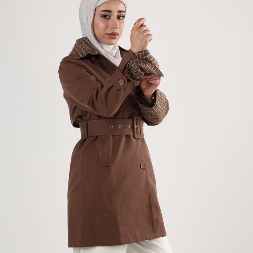 112517 - Plaid collar Trench coat - Mocha