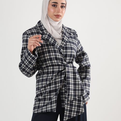 0126146 - Blue plaid side tie Jacket