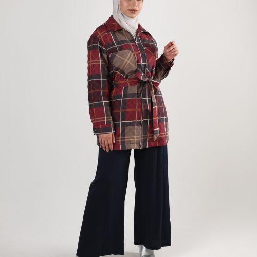 122512 - Black belted plaid waist Jacket