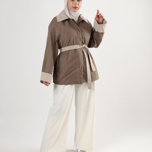 0126125 -Khaki & beige Two tone belted Jacket