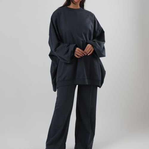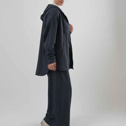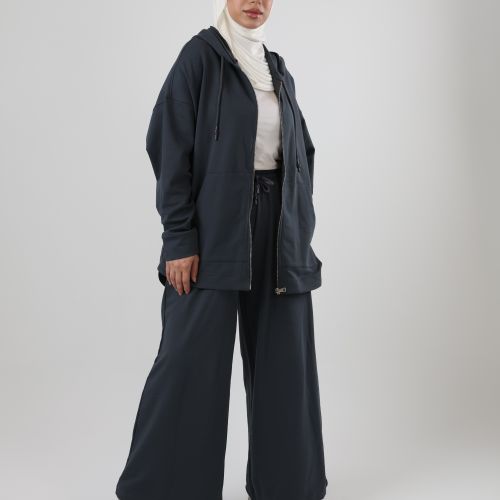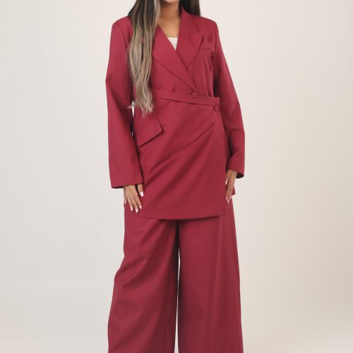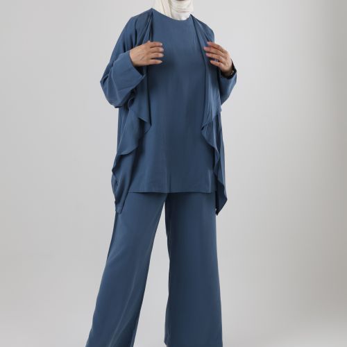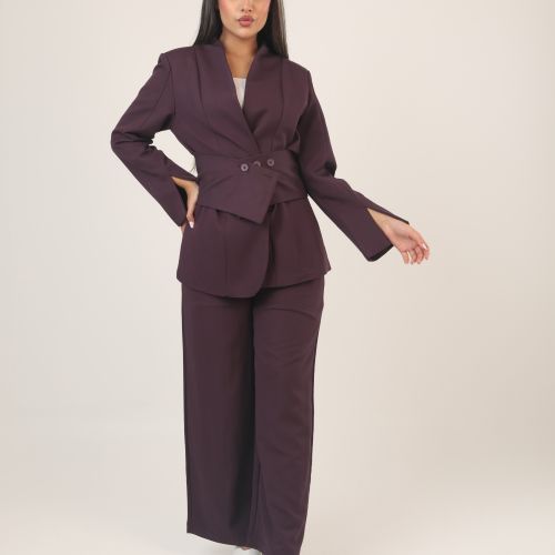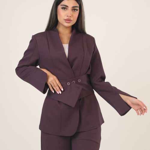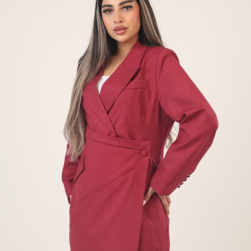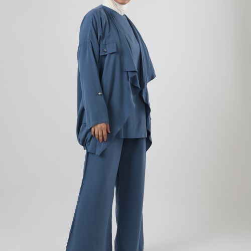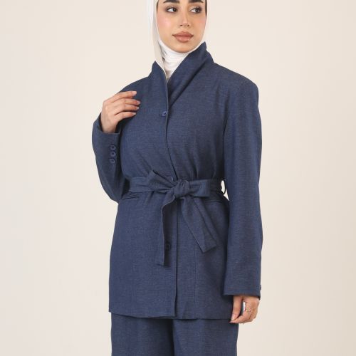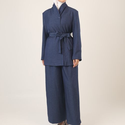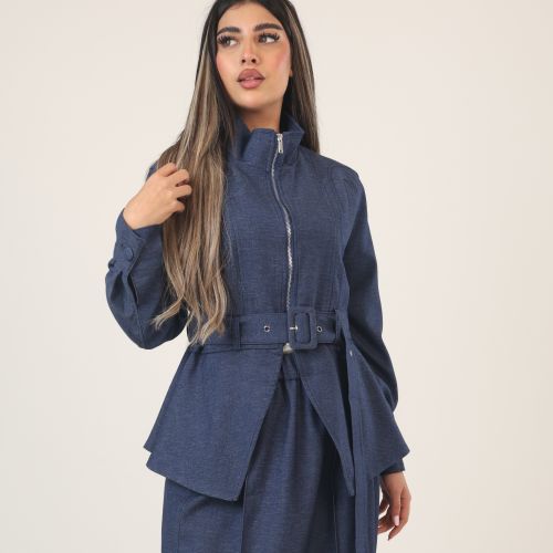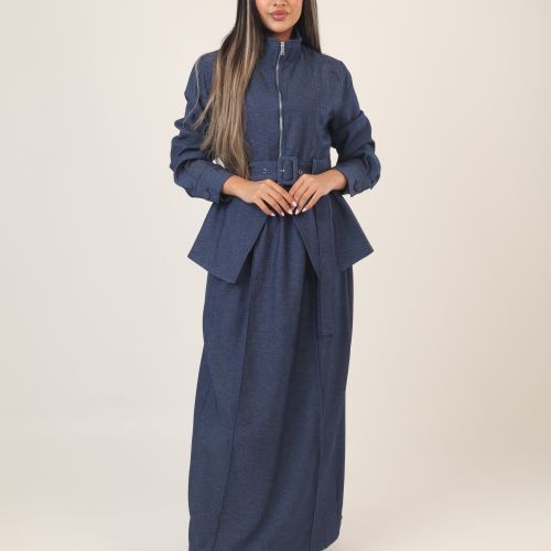 112505 - high collar belt jacket Maxi Skirt Set - blue