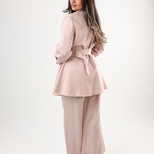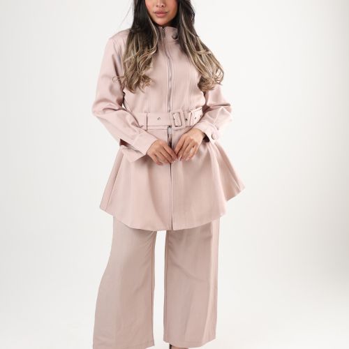 0126114 - Dusty Pink belted zip Jacket set