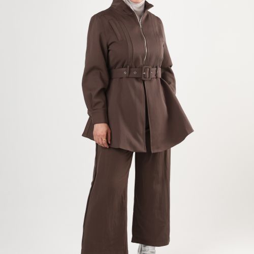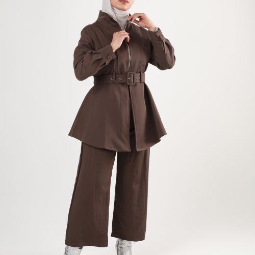 0126113 - Brown belted zip Jacket set