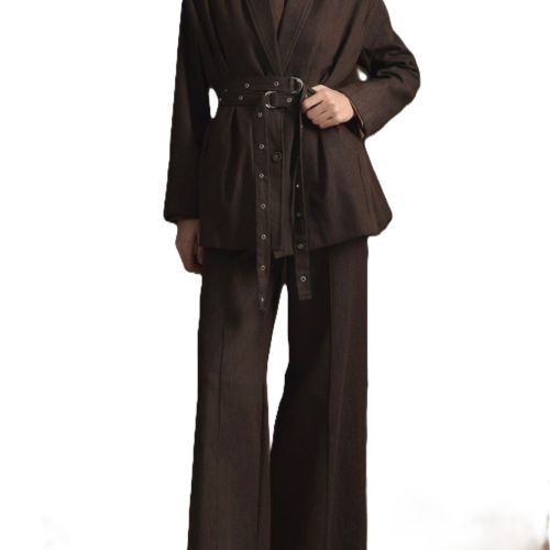 112522 - hight neck set with belt - Taupe brown